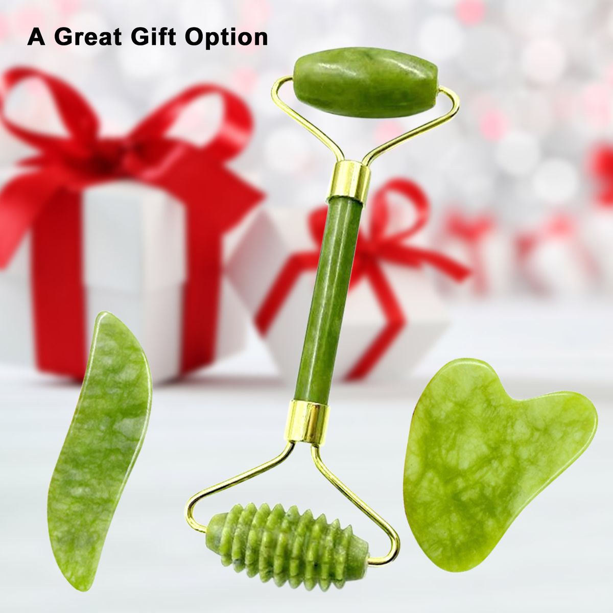 1 x Jade Roller,1 x Gua Sha Scraper (Heart Shape),1 x Face Scraper
