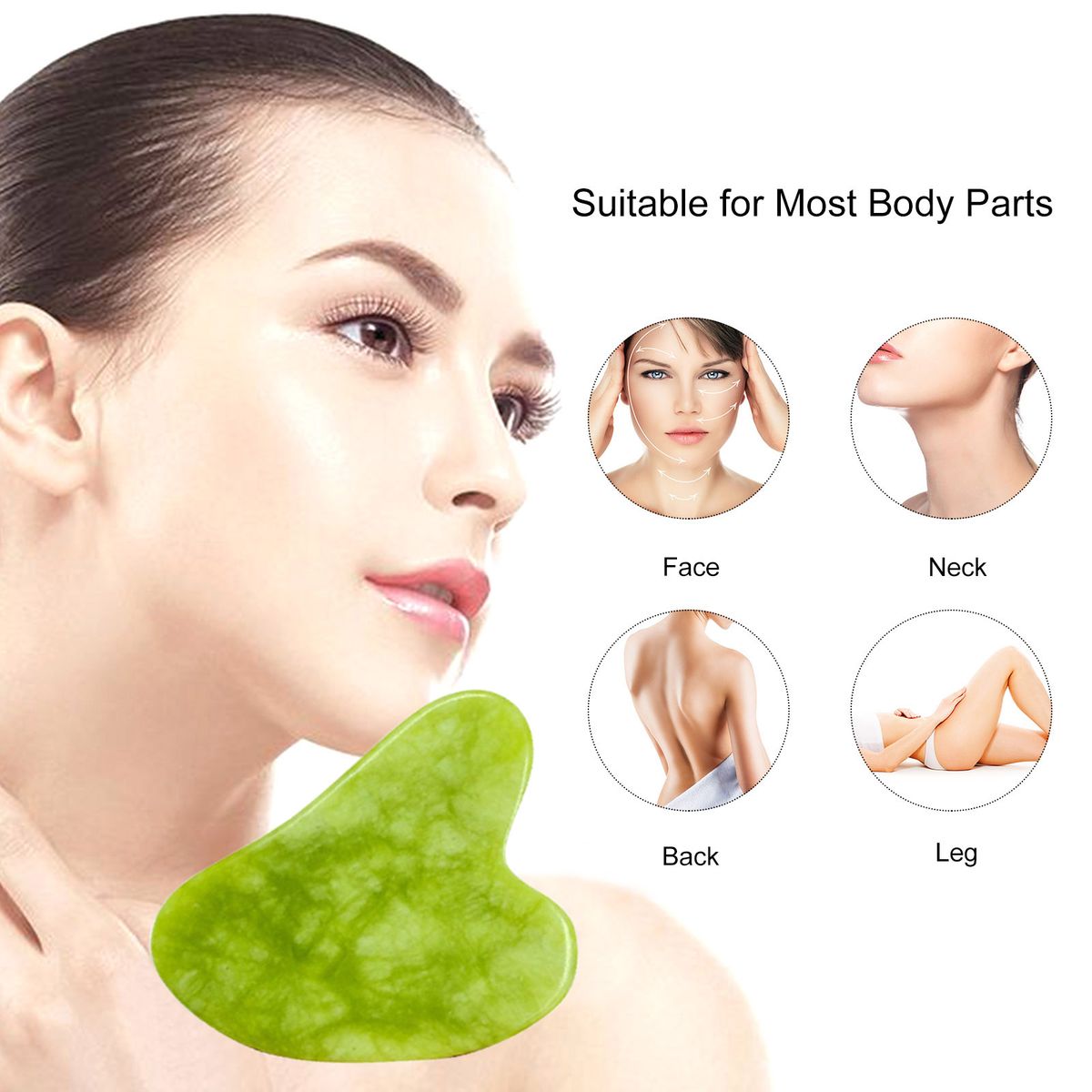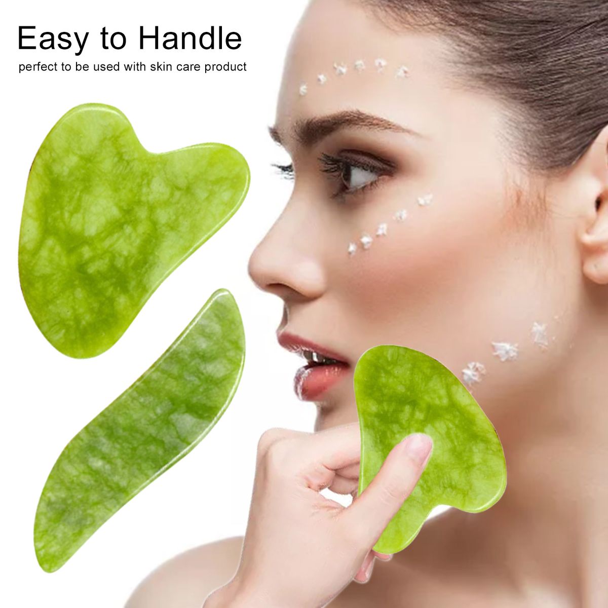 This stone skin care tool kit is made of jade, you will feel cool when you apply it to skin, very easy to use.