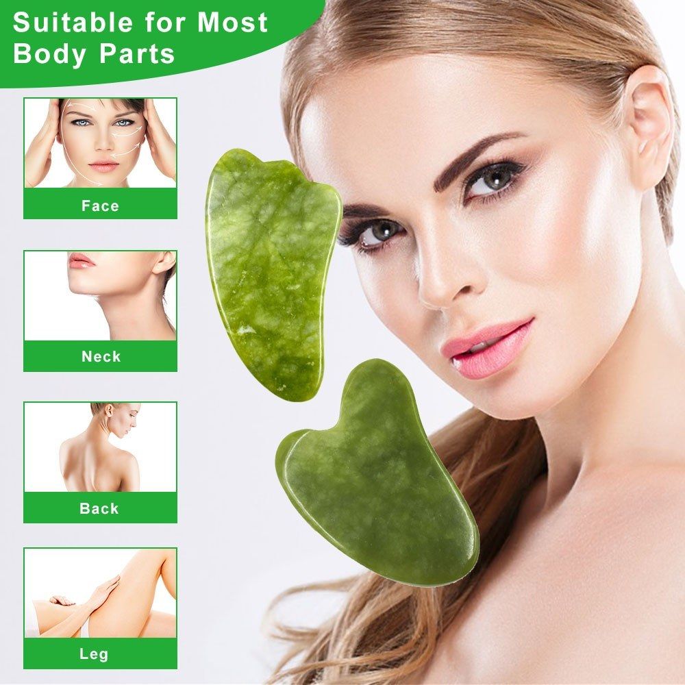 Comes with 2 Gua Sha scrapers, you can use one to massage face while the other to massage neck or leg.