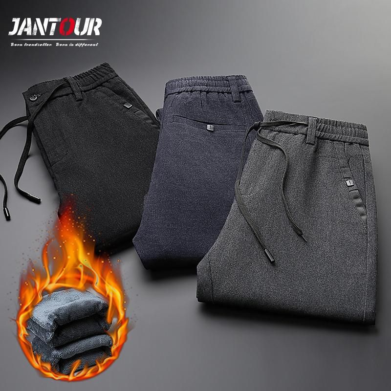 Jantour-pantalones de lana clasicos para hombre pantalon grueso informal de negocios rectos color negro pantalones grises talla 28 a 38 novedad de invierno
