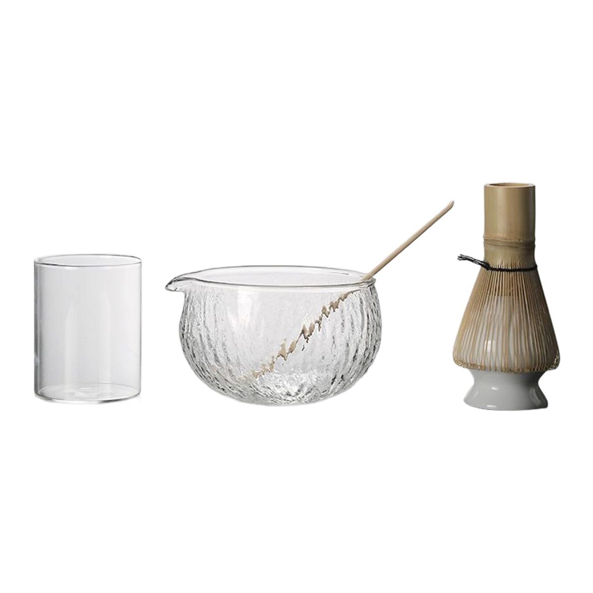1 Piece Chashaku 1 Piece Matcha Bowl 1 Piece Glass Cup 1 Piece Chasen 1 Piece Chasen Holder