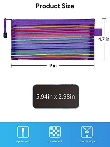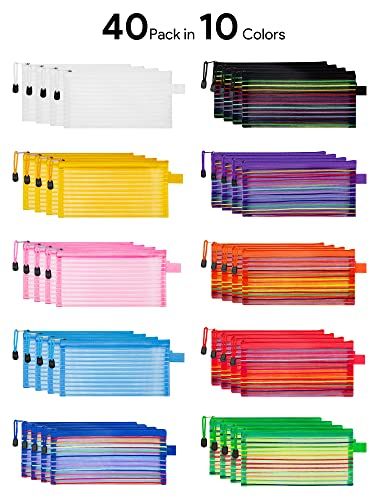 40 Pieces Zipper Bags: Come with 40pcs zipper mesh pouches in 10 colors, they are perfect for organizing office supplies, cosmetics, documents, toiletries, receipts, envelopes more simply and orderly, effectively preventing the loss of important items.