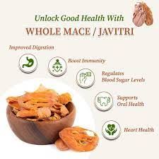 The benefits of mace are it stimulates the digestive system and increases appetite. Mace can also be applied externally to reduces rheumatic pains . Javentri whole (mace), Mace is the bright red lacy covering of the nutmeg shell. The mace is carefully taken out from the shell and broken into various parts. The benefits of mace are it stimulates the digestive system and increases appetite. Mace can also be applied externally to reduces rheumatic pains.