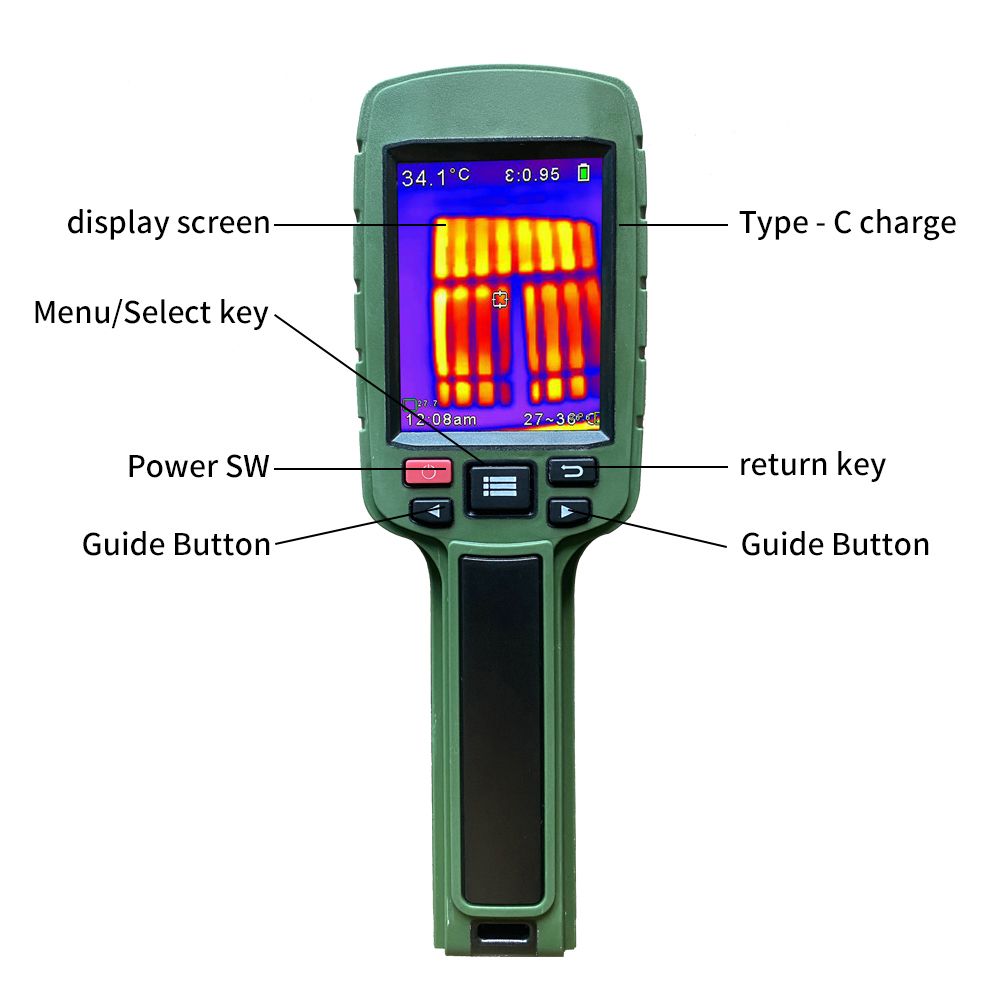 7 color palette modes can be adjusted according to your needs to set iron red, lava, rainbow, pseudo color, white hot, cool color, brown hot.