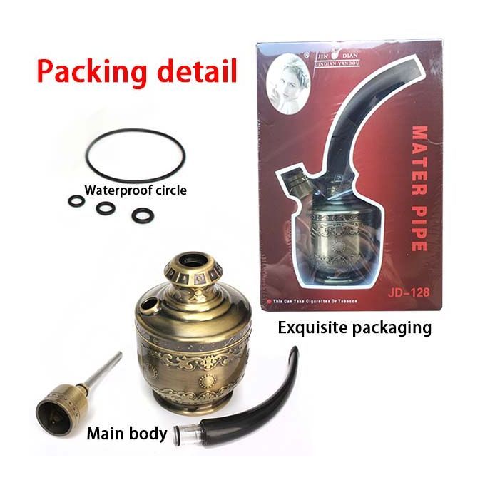 Feature:Specification: Color: BronzeMaterial: resin + metalFunction: filter tobacco tar, reduce the harm of tar and nicoti ne on human bodyProduct size: 13*8*6cmPacking size: 17*12*6cmWeight (with packing): 95gAccessories: 1*snuff bottle, 1*smoke cup, 1*holder, 4* sealing rings Details:1) this product chooses environmental non-toxic materials2)Exquisite carved surface3) this product is suitable for all kinds of Cigare ttes and all kinds of tobacco4) this product can be greatly filtering of tobacco tar, reducing tar and nicoti ne in the harm to human body5) method of use; Open the lid on water pipes to the water kettle in general6) the product is novel and practical structure reasonable smoke small resistance is convenient to usegood transition effect is the best choice for smokers Packing includes:1 * Hoo kah Smoking Pipe