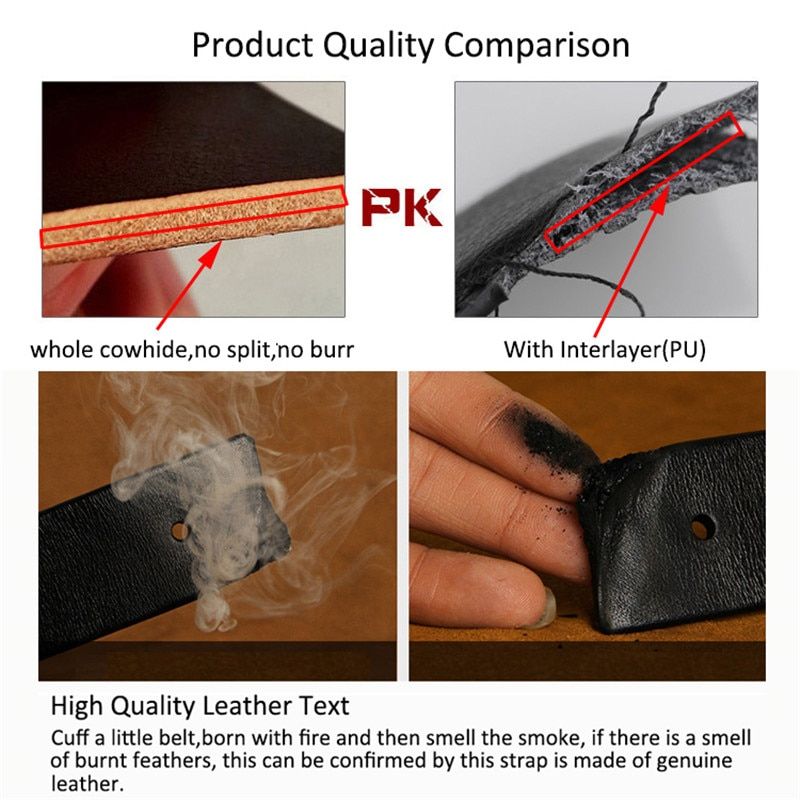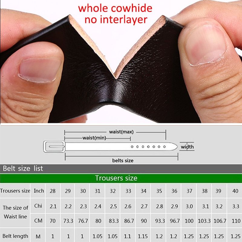 Product Details Maintenance advice: 1. You are advised to different according to different dress collocation style belt used interchangeably,Cleaning and maintain belt drying ventilation in a timely manner,Don't overuse the same belt. 2. The screw connection in use process,Attention to the slack screws,In order to avoid accidental loss,Give you cause unnecessary trouble. 3. The belt is expendable,There is a certain life span,The correct maintenance of the,Enables you to belt has a longer life. High quality leather belt. This is our free cutting of the belt,If the belt length is too long you can cut off the excess at the buckle end and re-attach using a screwdriver and razor blade or sharp knife,A leather punch is thoughtfully provided to enable you to punch a hole for the re-attachment of the buckl. The belt body is cowhide leather design,which ensures the high quality and durability of the belt. Note: Images are for reference only. Actual . Actual dimensions may vary by up to 2 cm.
