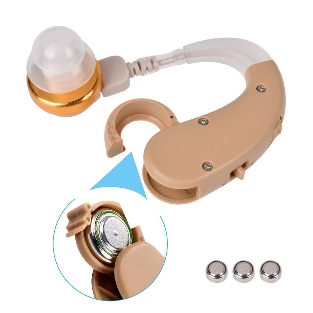 Description: If you find it hard to hear very well from others, a hearing aid can help you solve this problem. We devoted ourselves to the hearing protection and sound amplification. Therefore, here comes our mini sound amplifier, which offers you precise sound amplification. Come and have a try. Features: An advanced feedback control technology ensures there are no whistling, very low noise levels, and a very quiet background. This hearing aist device with 45dB±5dB sound gain makes this sound amplifier ideal for mild to moderate hearing lo. This light weight headset offers fits behind the ear using near invisible bendable ear line tubes with simple one switch operation and volume hearing control. Using band digital sound proceing, our affordable devices help amplif y speech while actively reducing background noise. These ear amplifiers are very durably made with superior materials and outstanding reliability with a sterilizing storage box. Note: Please read the user manual carefully before use. Specifications: Type: Hearing Aid Material: Silica ; ABS Color: Khaki Max Sound Output: 130±4dB Frequency Range: 450~3500HZ Equivalent Input Noise Level: ≤32dB Total Harmonic Distortion: ≤10% Full Sound Gain: 45dB±5dB Voltage: DC1.5V Current: ≤6mA Package Size: 13 * 10.5 * 3cm / 5.11 * 4.13 * 1.96in Package Weight: 152g / 5.36oz Package List: 1 * Hearing Aid 4 * Earplugs 1 * Cleaning Brush 1 * User Manual 1 * Sterilizing Storage Box 3 * on Cell