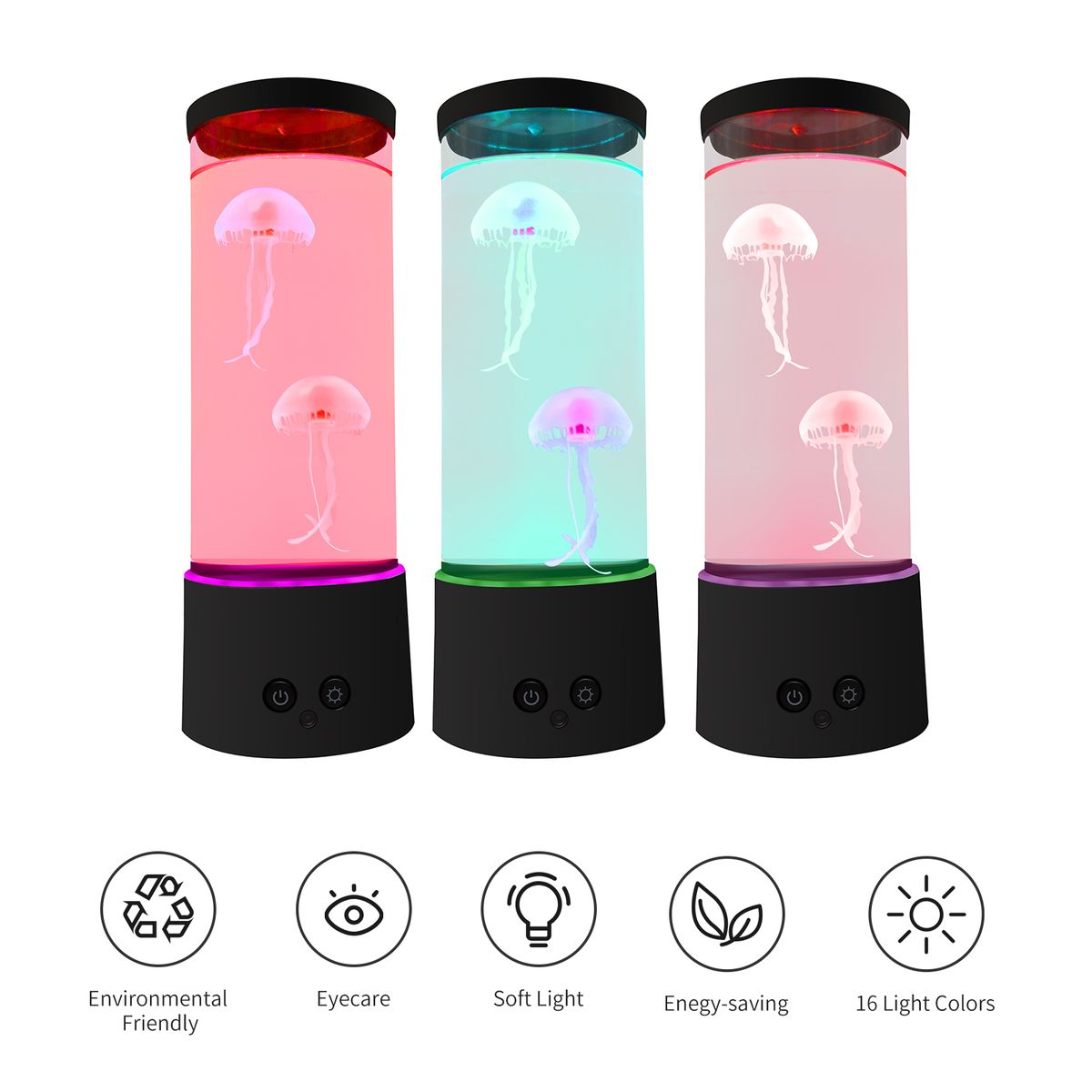 Great Desktop Decor - The Animated Jellyfish Lamp brings simulated marine life and colorful LED lighting to any room at your Home, Office or Institution for people with special needs.
