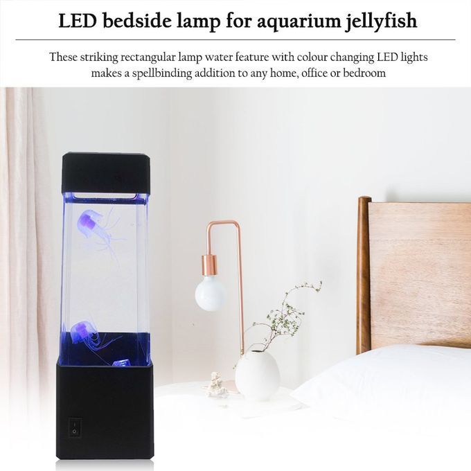 Jellyfish Water Aquarium Tank Relax Bedside Mood Light For Home De Or-Black