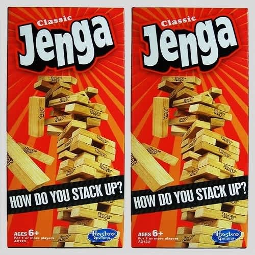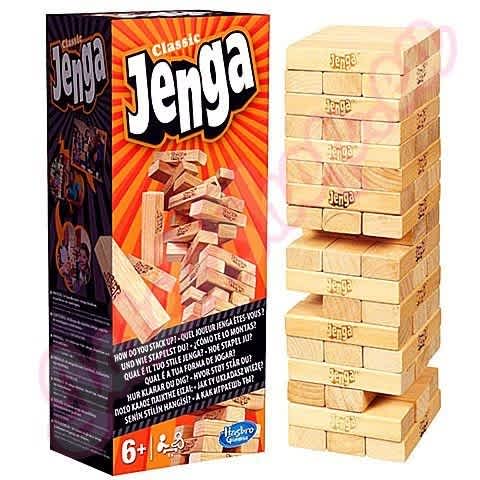 It's the classic block-stacking, stack-crashing game of Jenga. How will you stack up against the law of gravity? Stack the wooden blocks in a sturdy tower, then take turns pulling out blocks one by one until the whole stack crashes down. Is your hand steady enough to pull out the last block before the tower collapses?.