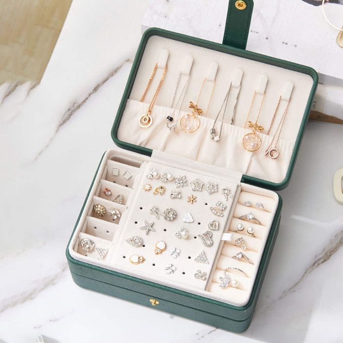 Jewelry Storage case;travel jewelry storage box jewellery faux leather;organizer case necklace earrings organiser small;gift box women Doubel Layer Display Case Storage;jewlery earring girls Multi layer Holder Showcase;Jewelry Storage Box girl womanOrganizer Watches