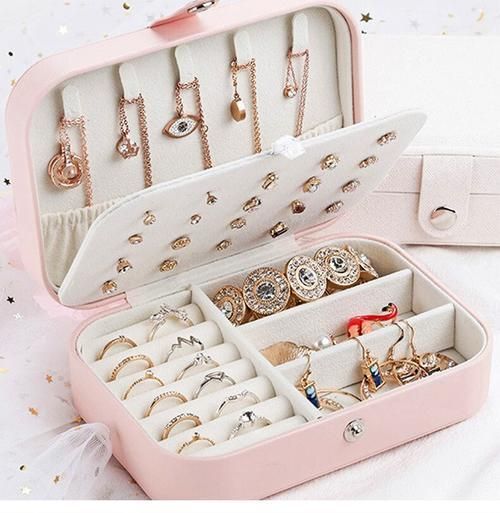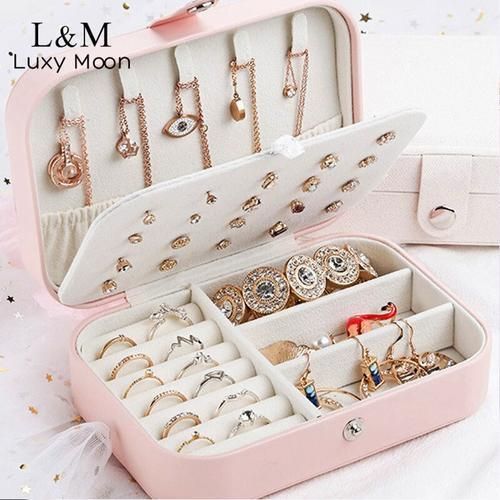 Jewelry Organizer Large Capacity Leather Storage Box Portable Travel Necklace Ring Holder Small Case Cosmetic Bag -Cosmetic Bags & Cases
