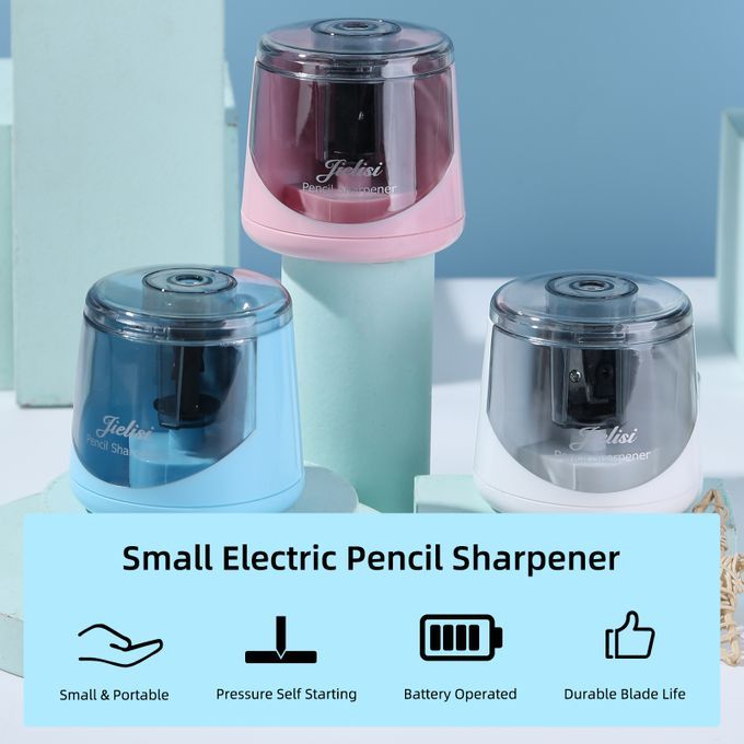 JIELISI Small Electric Pencil Sharpener Portable Cute Pencil Sharpener Battery Operated Sharpern for 6.5-8mm Colored Pencils for Home Office School Classroom Students Artists