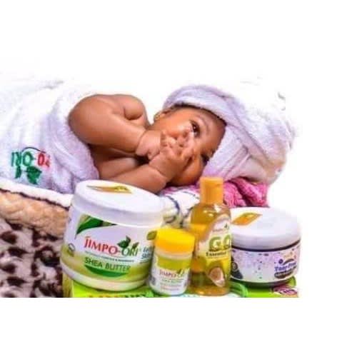 Jimpo-ORI Baby Skin Care kit.s an all in one pack that gives prompt and quick access to our natural skin care solutions. The Baby Birth Pack contains varieties of our quality skin care products such as the Early Age Skin Care Shea Butter Cream, Tear free Soap, massaging ointment, Kidskin lotion and Go-Essential® Coco-VERA™ Herbal Baby Oil. Jimpo-ORI® Baby Birth Kit ™ makes quality skin care available to and affordable by all classes, it is the best congratulatory gift item for new mothers, birthday gifts and also suitable as souvenirs.