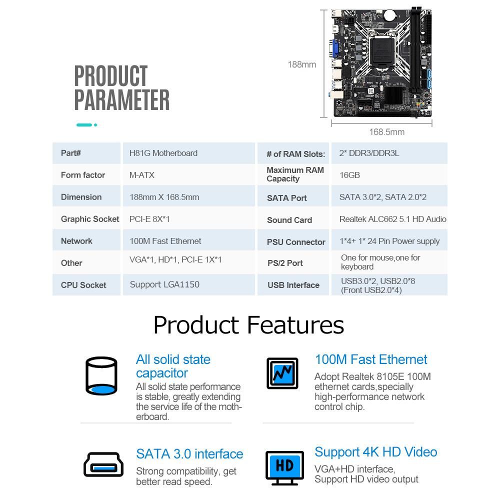 Buy JINGSHA H81G Computer Motherboard Gaming Mainboard Dual-channel DDR3 Memory Slots 100M Network Card Support LGA1150 CPU in Nigeria