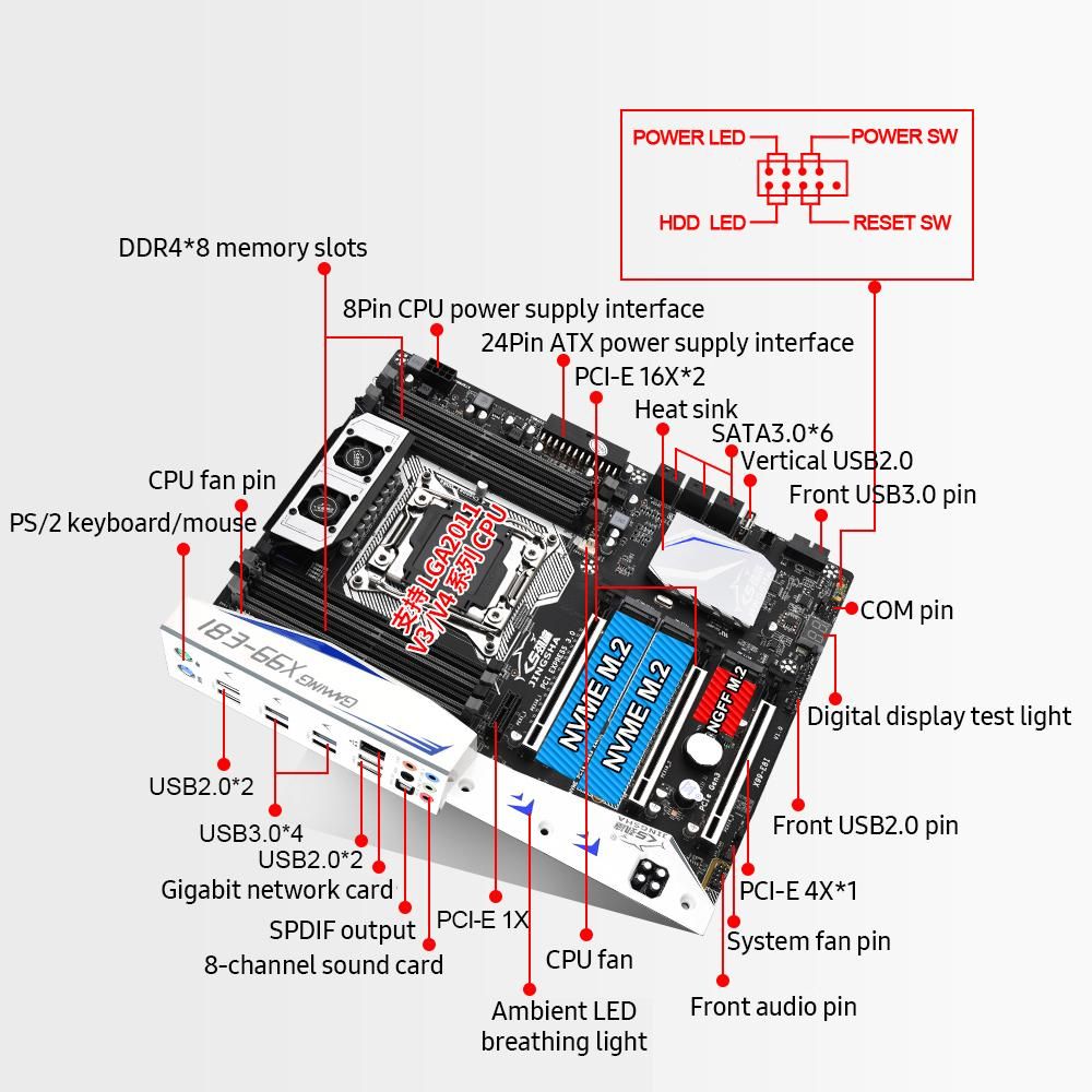 Buy Jingsha X99-E8I Gaming Motherboard with 8 DDR4 Memory Slots 6 SATA3.0 Ports Support Intel Xeon E5 LGA2011-3 V3/V4 Series CPU in Nigeria