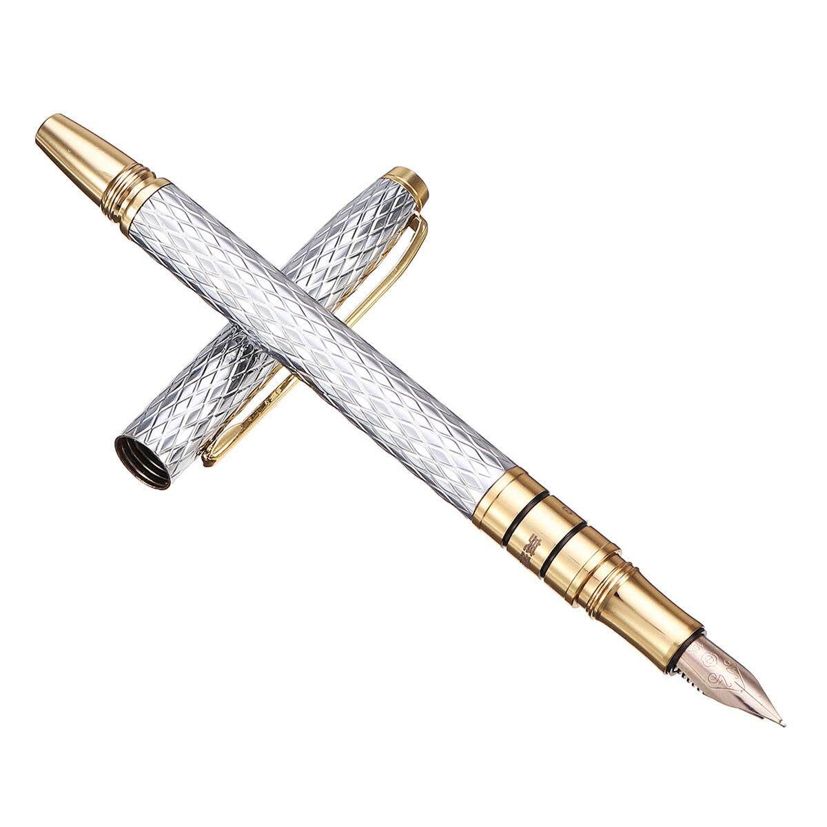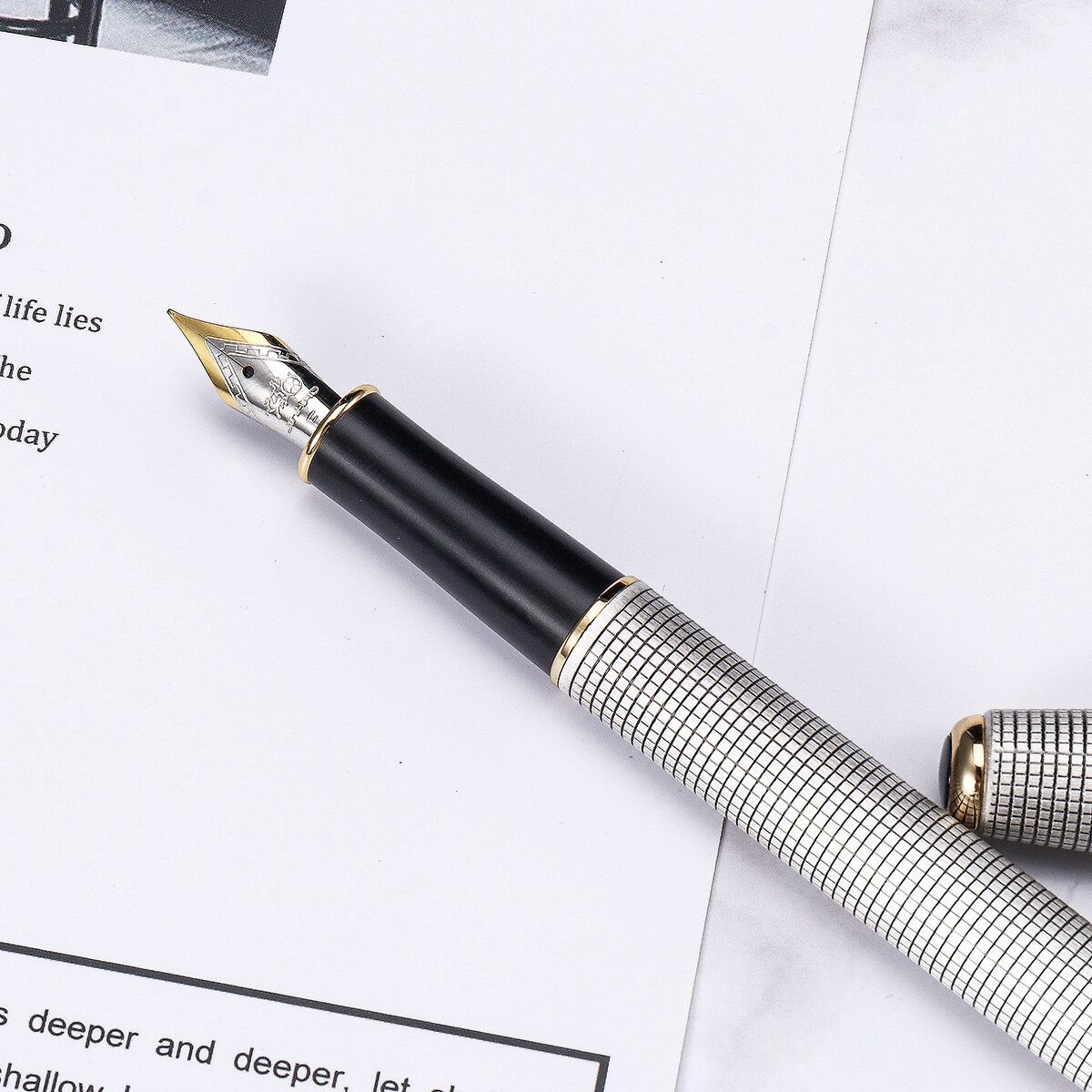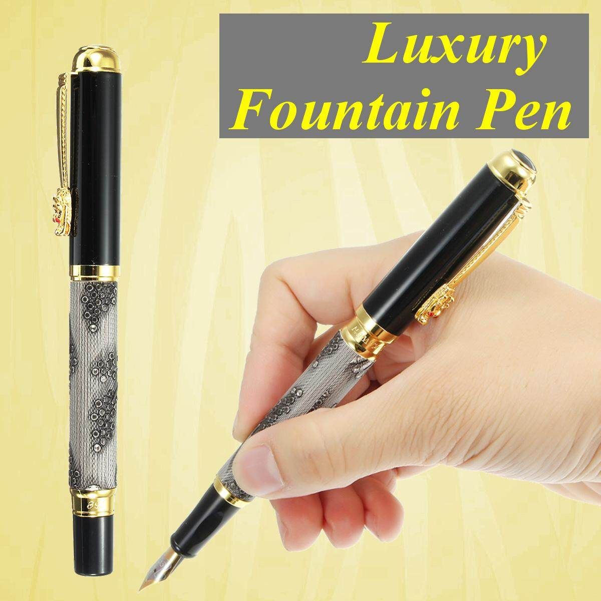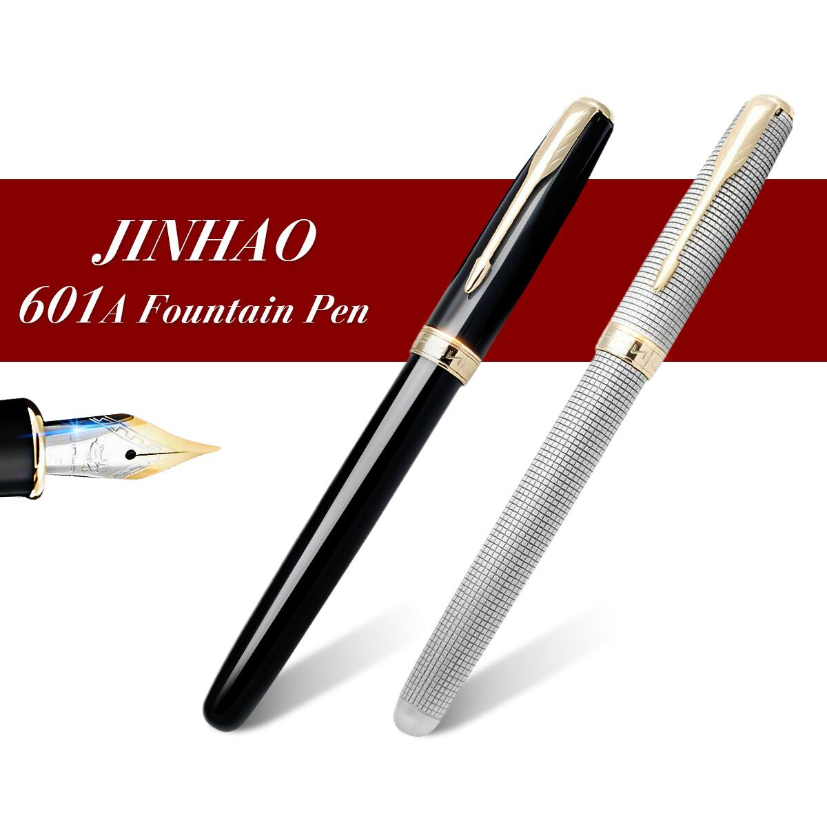 JINHAO 601A Lattice Luxury Fountain Pen High Quality F Nib Ink Pen Gift Specifications: Type: Fountain Pen Brand: JINHAO :Black/Sliver Nib: Fine Nib 0.5mm Nib Material: Stainless Steel Length: 135mm/5.27” Diameter: 12mm/0.47” (1cm=10mm=0.39inch) Measurement Details in the attached picture. Package include: 1x Fountain Pen(Black/Sliver) 1X Box Features: -100% and high quality. -Fine Nib 0.5 mm nib bring you a perfect writing experience, very smooth. Great for writing in different occasions. -Applicable Scene --Elegant and attractive design fountain pen, a great gift for friends and families. Perfect for both work and study, compatible for businessman, students and daily writing. -Fit any your favorite bottled ink. huge Ink capacity is enough for long periods of using, saving you valuable time. Notice: -Please allow slight deviation of measurement due to manual measurement. -Due to different monitors and different light, the picture may not reflect the actual of the item. -Please consider the actual sizes in the listing as the pictures are generally enlarged to show detail. Ifyouhaveanyquestions,pleasecontactus.