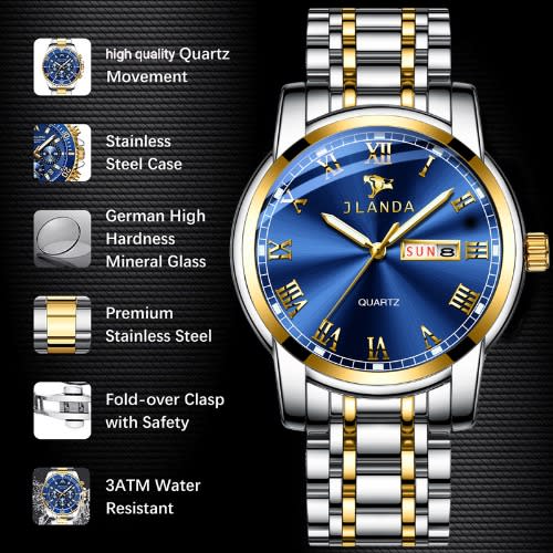 And This bracelet as an elegant gift, in date, anniversary day, Valentine & rsquo;s Day, birthday, Father & rsquo;s Day, Mother & rsquo;s Day etc. for family and friends to show our love and concern about their health Superior Quality: Our bracelet is comfortable to wear, not easily scratched and is tough and durable, also made of High Quality material. Grab this now and compliment your daily outfit. For all Occasions. Therefore, go for it and you will smile!Luxury 2-movements analog digital quartz golden stainless steel wrist watch menFeatures with date, week, timer and LED light functionsSuitable for any occassionsStainless Steel MaterialFade Resistance ColorDurabilityPortabilityThis bracelet as an elegant gift ,in date, anniversary day, Valentine & rsquo;s Day, birthday, Father & rsquo;s Day, Mother & rsquo;s Day etc. For family and friends to show our love and concern about their health Superior Quality: