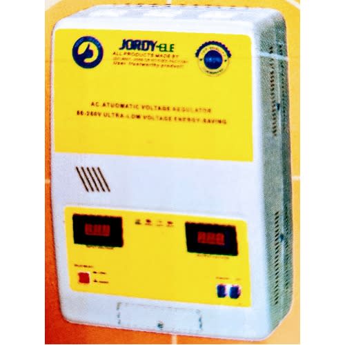 5KVA JORDY-ELE Servo Wall Mount Central Voltage Stabilizer is a portable sleek white hue that offers solution to power problems and is ideal for your home and office & lrm; & lrm;. & lrm; & lrm; The voltage stabilizer is built to standard in order to deliver maximum protection to your electrical appliances in your home and office & lrm; & lrm; as it comes with a steady output voltage feature & lrm; & lrm; that & lrm; & lrm; delivers a steady voltage & lrm; & lrm;, & lrm; & lrm; without fluctuations thereby making your electrical appliances safe and secured from unsteady voltage output & lrm; & lrm;. & lrm; & lrm; & lrm; It is built with an input voltage of 80V-280V AC & lrm; & lrm;, & lrm; & lrm; and an output voltage of 220V+3% & lrm; & lrm;, & lrm; & lrm; which is a standard voltage capacity that will deliver the proper and adequate power voltage for all your appliances & lrm; & lrm;. & lrm; Keep yourself and equipment safe & lrm; with this stabilizer & lrm; & lrm; to protect it from excess voltage supply & lrm; & lrm;. & lrm; & lrm;
