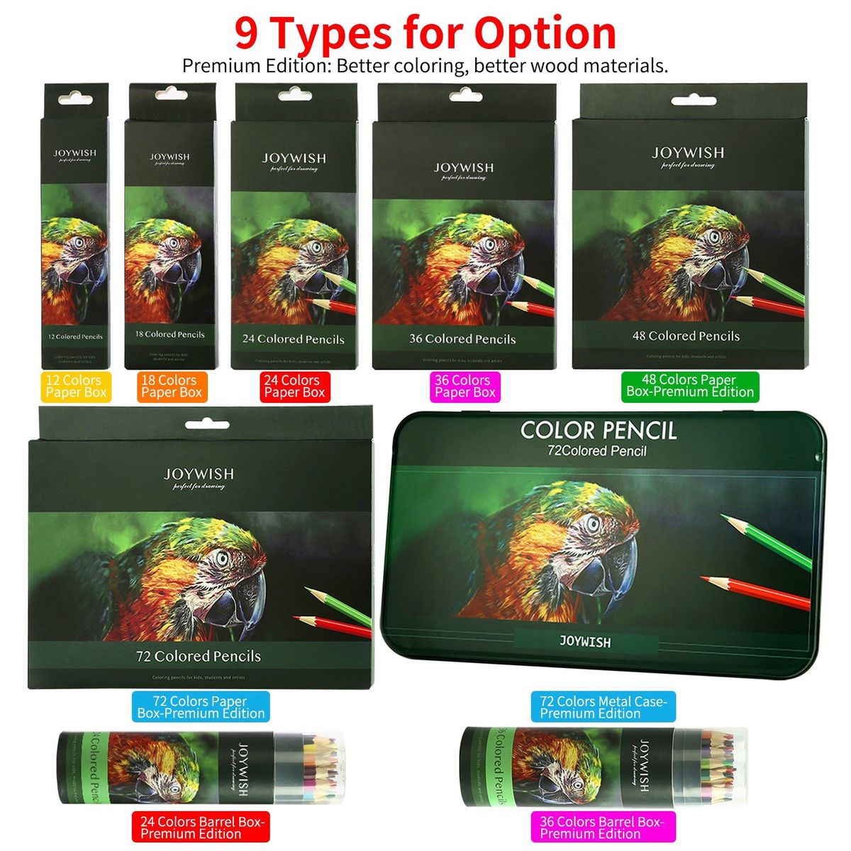 Type: 12 Colors Paper Box/18 Colors Paper Box/24 Colors Paper Box/36 Colors Paper Box/48 Colors Paper Box-Premium Edition/72 Colors Paper Box-Premium Edition/72 Colors Metal Case-Premium Edition/24 Colors Barrel Box-Premium Edition/36 Colors Barrel Box-Premium Edition(optional)