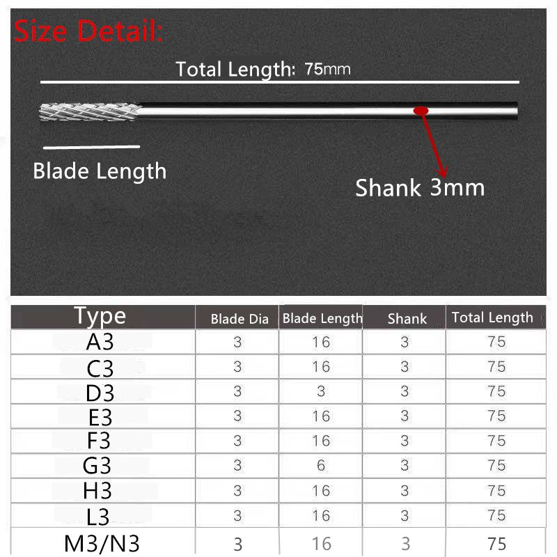 1*Jrealmer 1pcs 3x3x75mm Long Tungsten Carbide Burrs
