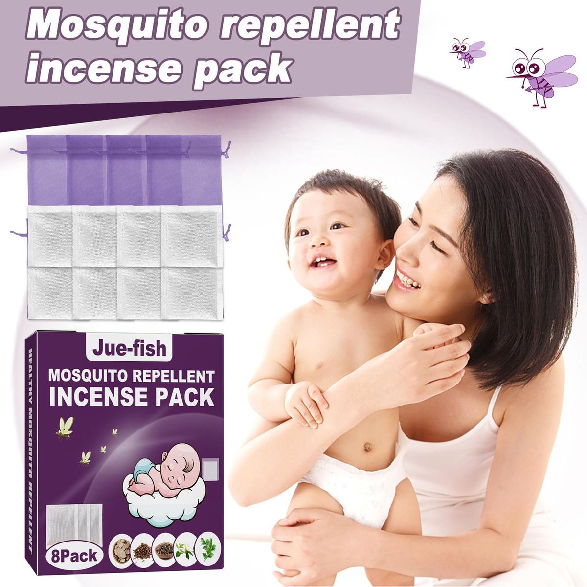 Buy Jue-Fish 8 Pack Mosquito Repellent Incense Packs Botanical Formula Long-term Mosquito Prevention for Baby Family in Nigeria
