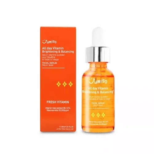JUMISO vitamin serum is a non-water-based and high-concentration serum for brightening. For all skin types, keep your skin radiant with the daily vitamin serum. It helps you keep bright skin tone and have healthy and balanced skin. It contains various vitamin complexes such as A, B, D, E, and K as well as vitamin C and many ingredients that nourish skin, helping skin brightening, soothing, and elasticity care.