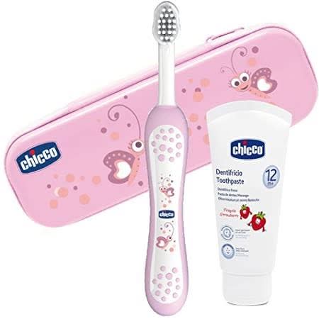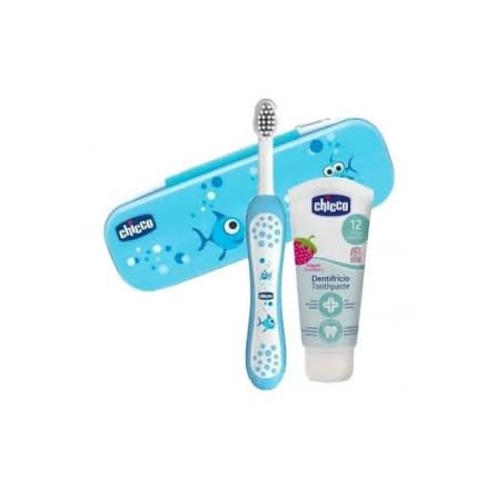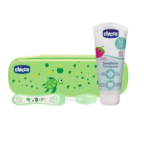 Contains: 2x toothbrushes, 1x toothpaste and 1x beaker