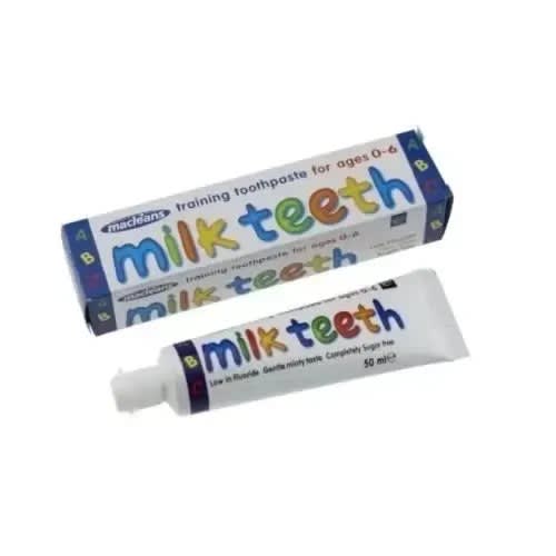 Ensure good dental hygiene starts early with our MACLEANS Milk Teeth Toothpaste for 1 - 6 years old. Designed for use as soon as a baby's first tooth emerges, this gentle formula is kind to the teeth but tough on decay. The gentle mint flavour is an ideal introduction to tooth brushing for younger children while the 50ml tube promises to last with only a small amount needed at each brushing session. Milk teeth aren & rsquo;t practice teeth, so taking care of them means you are helping to ensure that, when the time comes, children & rsquo;s big teeth (waiting in the gums) come through healthy and strong. The enamel on your baby & rsquo;s milk teeth is more susceptible to attack.So Macleans dental experts have come up with a special formula that & rsquo;s not only tough on decay, but also less abrasive than regular toothpastes. Macleans Milk Teeth Toothpaste is free from artificial colours or flavours and has a gentle baby-friendly minty taste.Start using as soon as your baby & rsquo;s first tooth emerges. Recommended level of fluoride for children 1-6 years to help strengthen and protect teeth from decay.