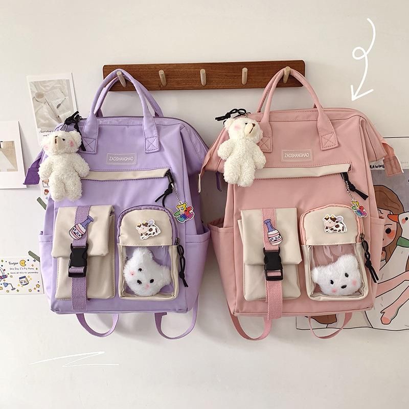 Buy Junior high school students schoolbag female Korean version of Harajuku style lightweight high school backpack large capacity campus all-match backpack primary school students Citron Pendant without badge in Nigeria
