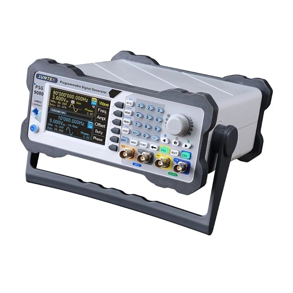 Equivalent performance dual channel output: The same or different function signals or arbitrary waveform signals can be output simultaneously; all parameters can be adjusted independently, the phase difference between the two channels is continuously adjustable from 0 to 359.9 degrees; the signal frequency can be up to 80MHz, and the output signal can be within 1MHz up to 25Vpp.