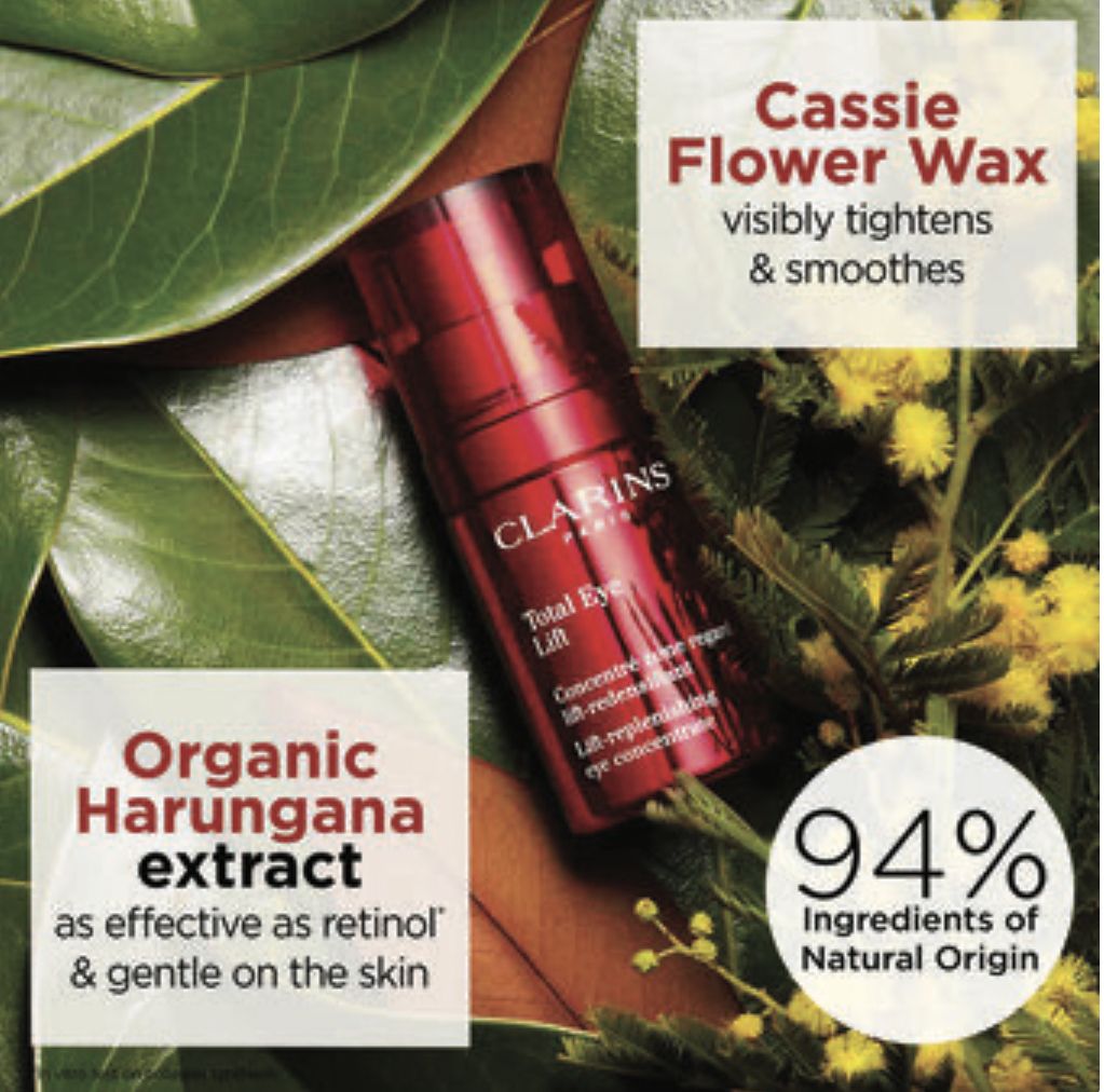 The product targets puffy eyes, dark circles under the eyes, tired and dull skin.