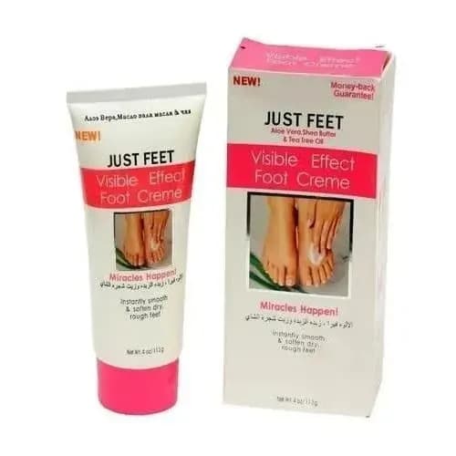 ust Feet Visible effect Foot Cream with Aloe vera, shea butter and tea tra oil instantly smooths and soften dry rough feet. It gives instant smoothness to your feet . it softens dry and rough feet with intensive moisturizers. Its formulated with aloe vera to renew and repair dry itchy feet, tea tree oil help deodorize, and shea butter to rejuvenate and softens, your feet are instantly resurfaced and return to a healthy-looking , satin smooth finish. Just Feet Visible effect Foot Cream with Aloe vera, shea butter and tea tra oil instantly smooths and soften dry rough feet. It gives instant smoothness to your feet . it softens dry and rough feet with intensive moisturizers. Its formulated with aloe vera to renew and repair dry itchy feet, tea tree oil help deodorize, and shea butter to rejuvenate and softens, your feet are instantly resurfaced and return to a healthy-looking , satin smooth finish. Just Feet Visible effect Foot Cream with Aloe vera, shea butter and tea tra oil instantly smooths and soften dry rough feet. It gives instant smoothness to your feet . it softens dry and rough feet with intensive moisturizers. Its formulated with aloe vera to renew and repair dry itchy feet, tea tree oil help deodorize, and shea butter to rejuvenate and softens, your feet are instantly resurfaced and return to a healthy-looking , satin smooth finish.