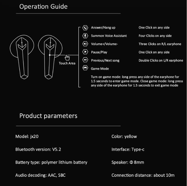 Buy JX20 Bluetooth Wireless Gaming Earphone E-sport Earbuds in Nigeria