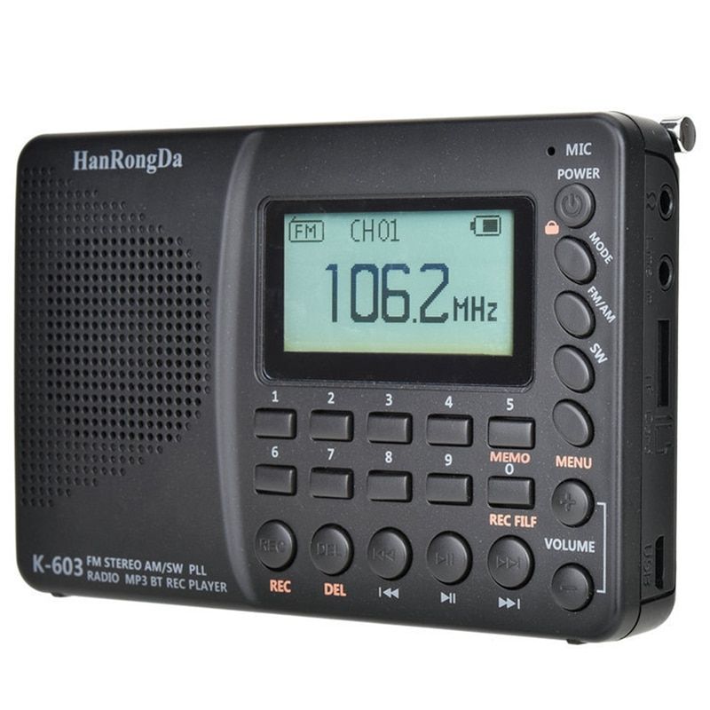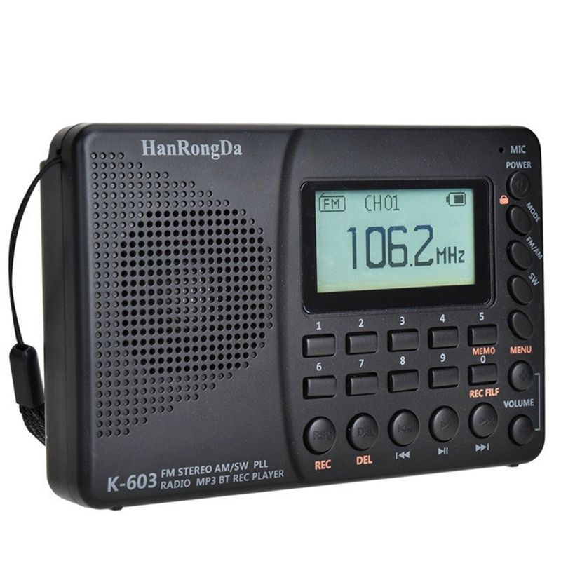 HanRongDa K-603 Full Band Radio Bluetooth FM AM SW Portable Pocket Radios MP3 Digital REC Recorder Support Micro-SD Card