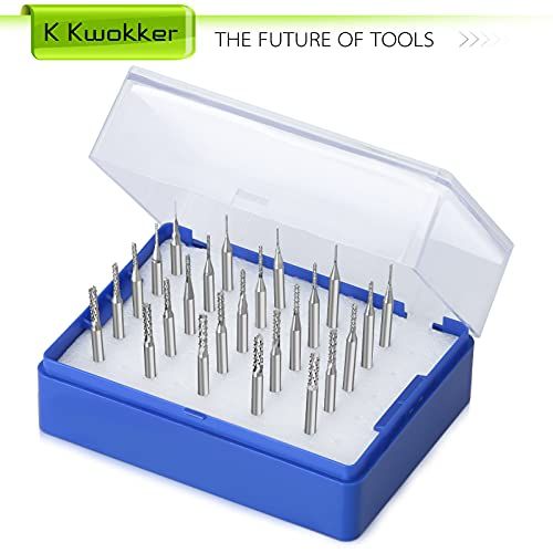 - [Nie 25Ps K Kwokker Metri CNC Router Bits] The end mills inludes 0.5mm to 3.175mm tungsten steel end mill set: 0.5/ 0.6/ 0.7/ 0.8/ 0.9/ 1.0/ 1.1/ 1.2/ 1.3/ 1.4/ 1.5/ 1.6/ 1./ 1.7/ 1.8/ 1.9/ 2.0/2.2/ 2.3/ 2.4/ 2.5/ 2.6/ 2.7/ 3.0/ 3.175mm. Various end mill sizes, meeting your different need in perfetly.