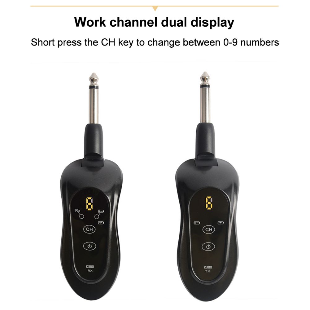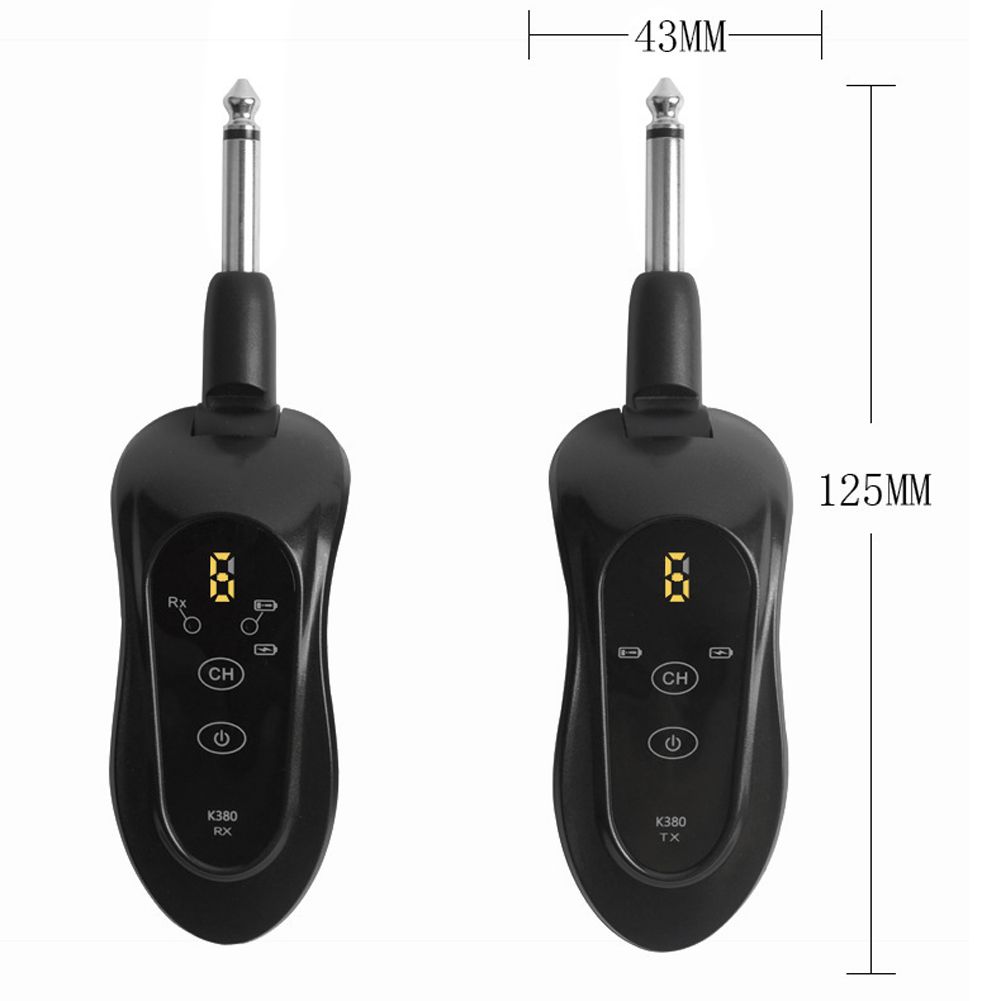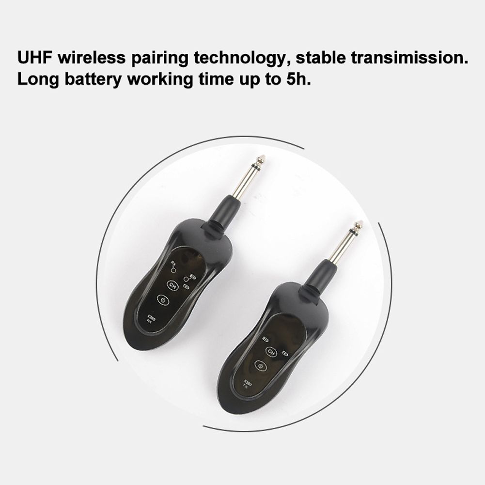 Wireless transmitter and receiver can be used for electroacoustic instruments such as guitar, bass, violin and so on.