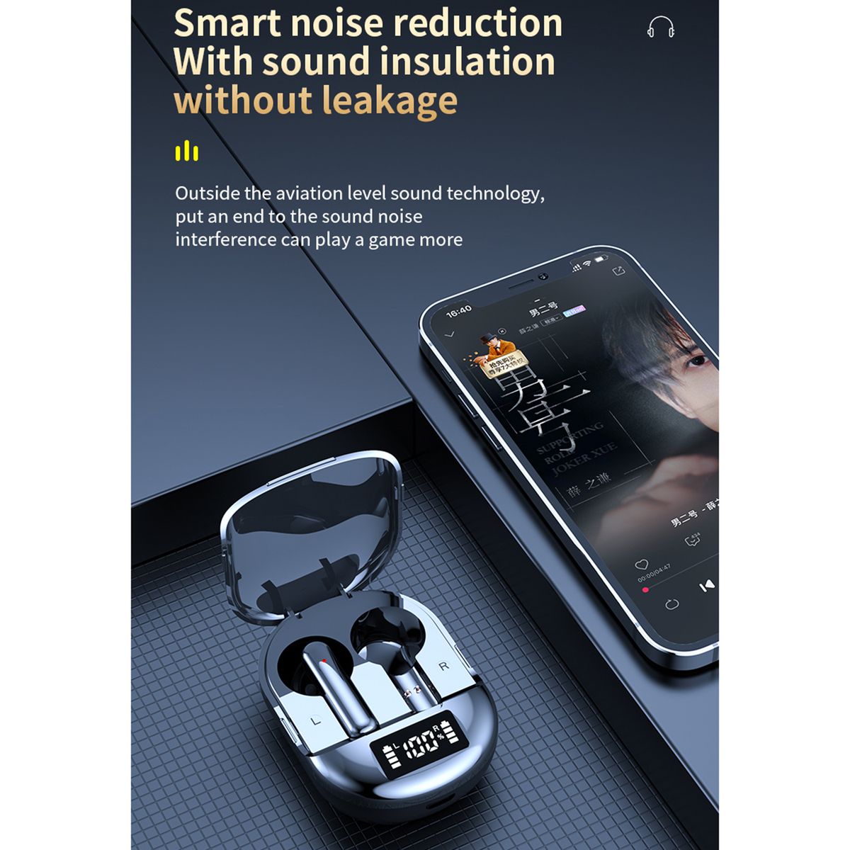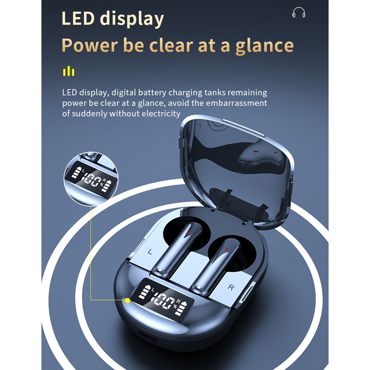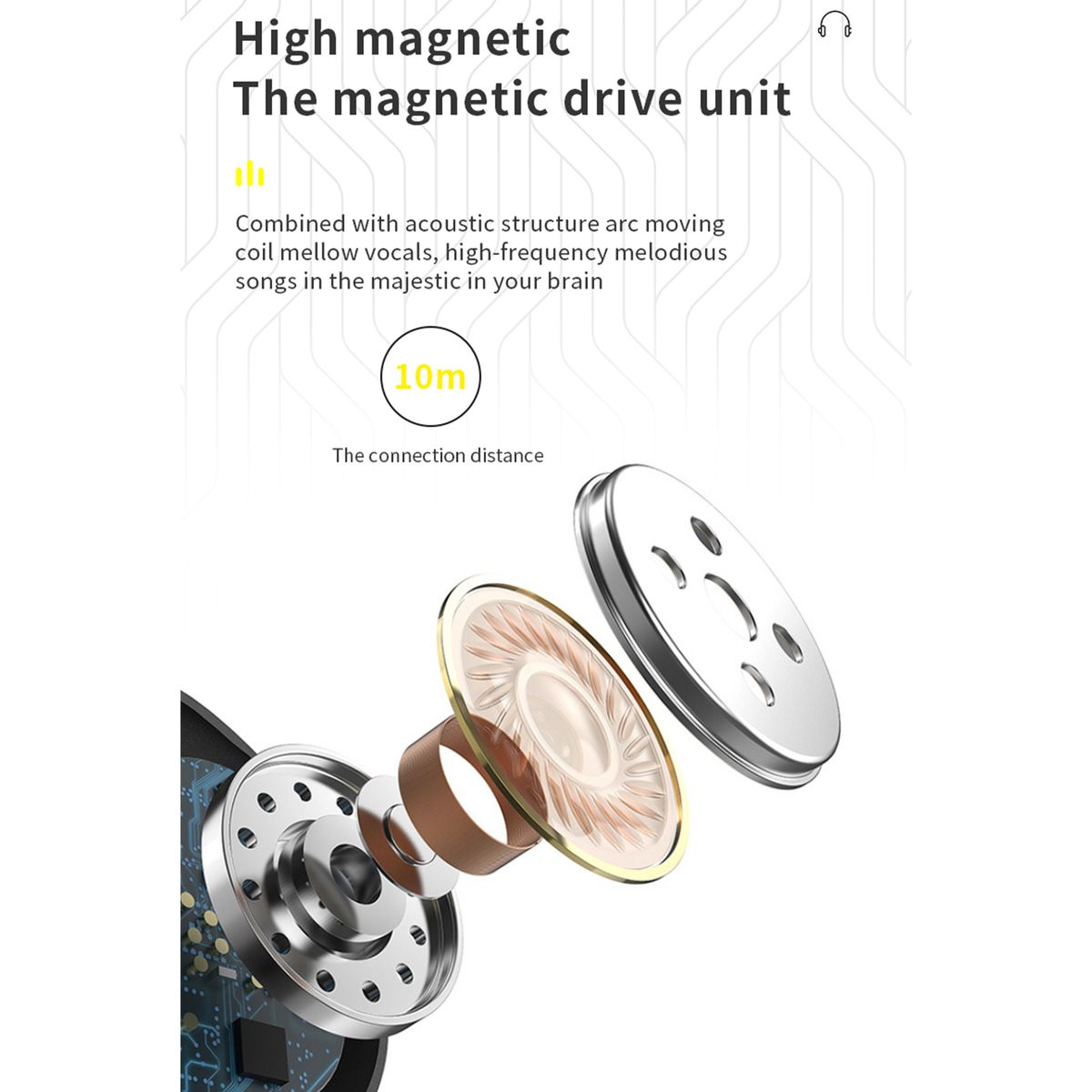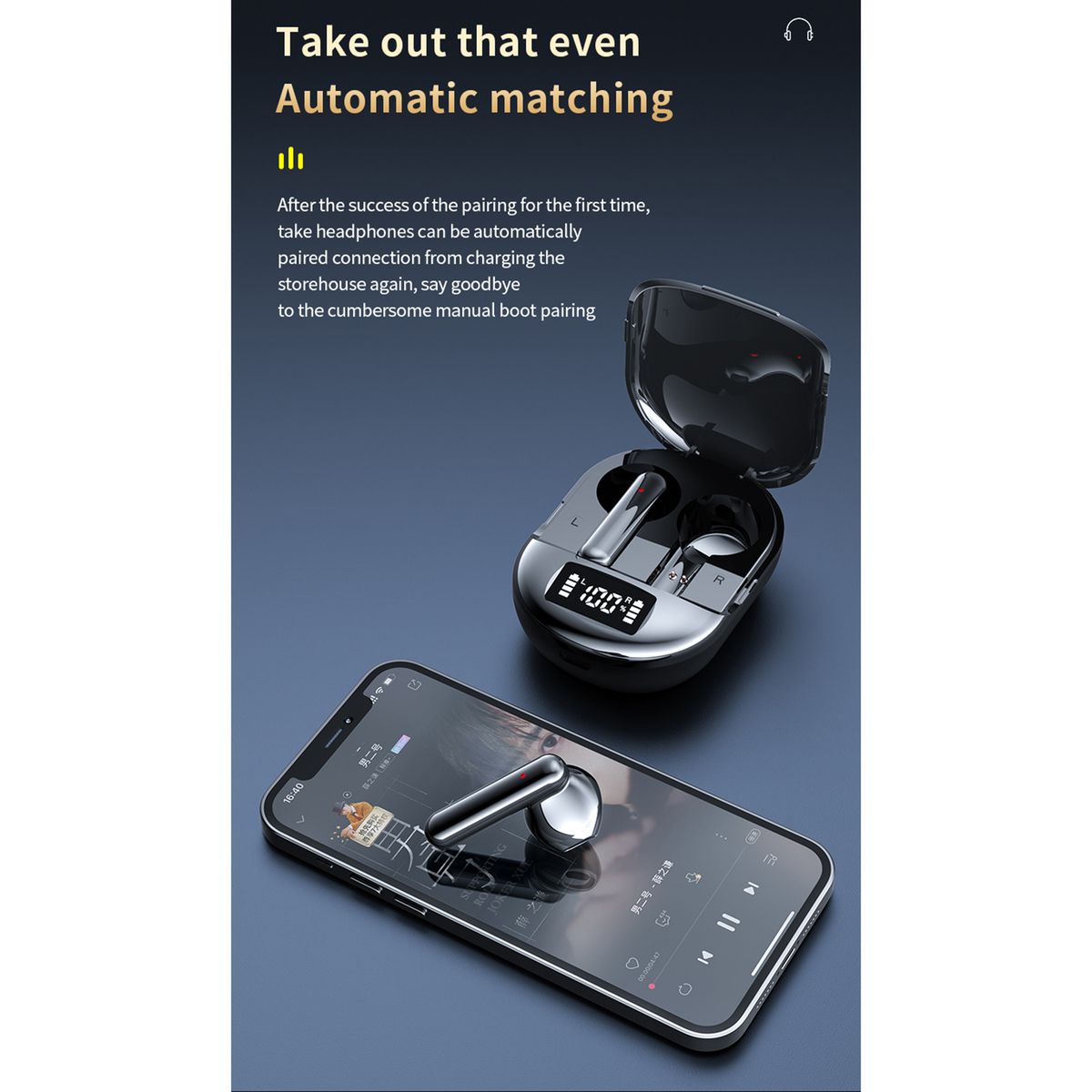 Portable wireless BT earphones, take out from the charging compartment, automatically turn on and pair.