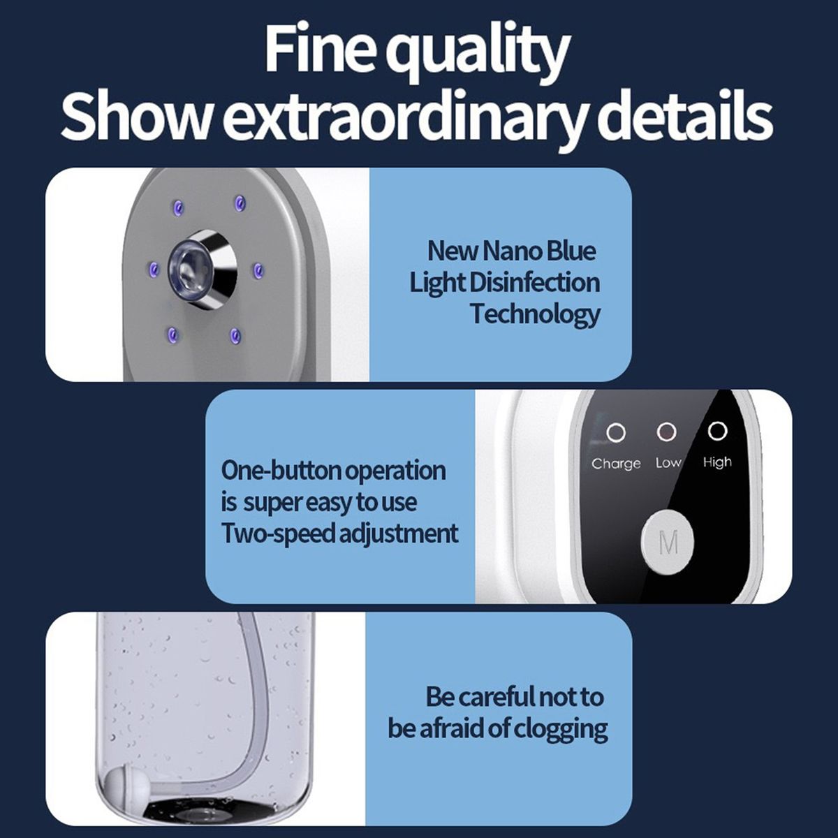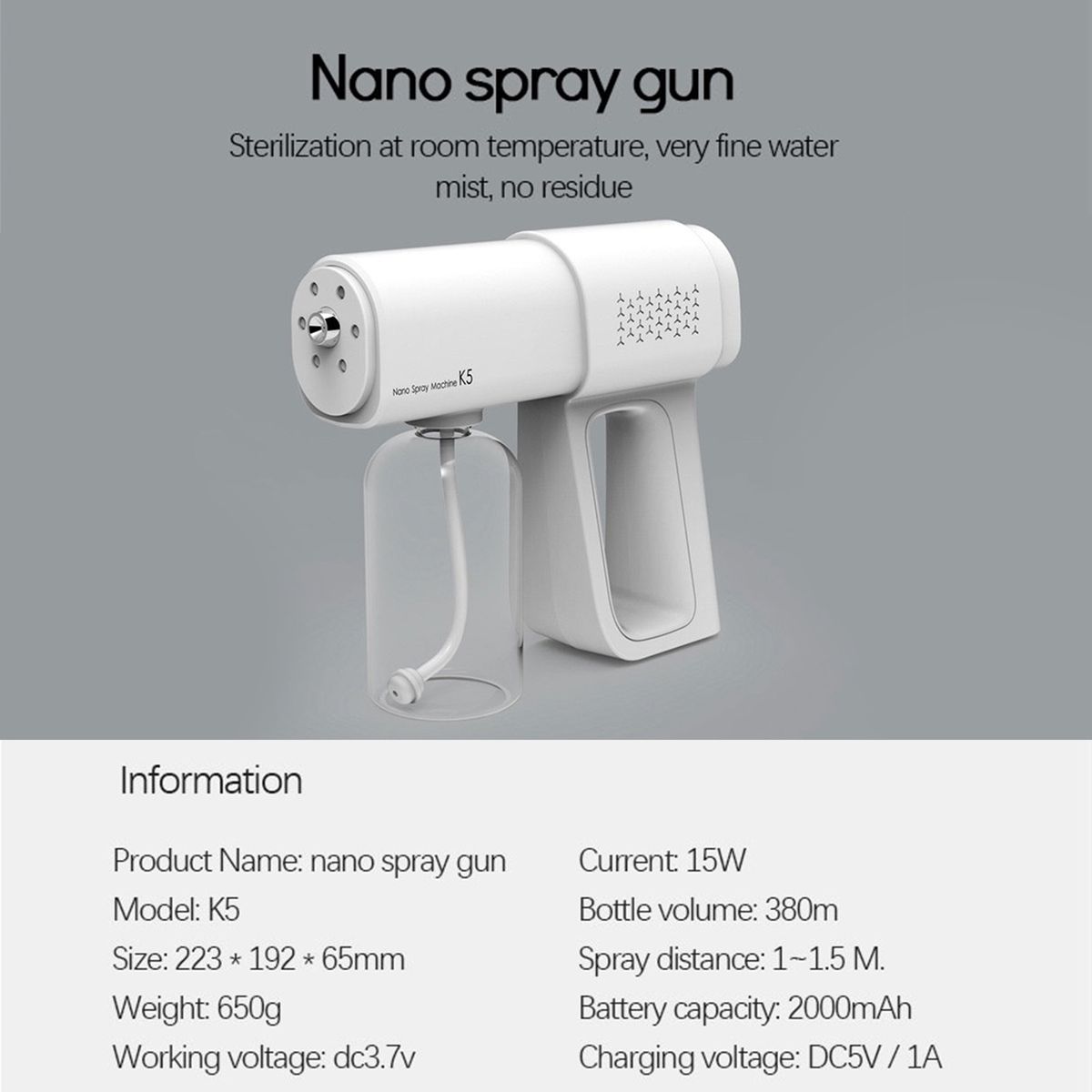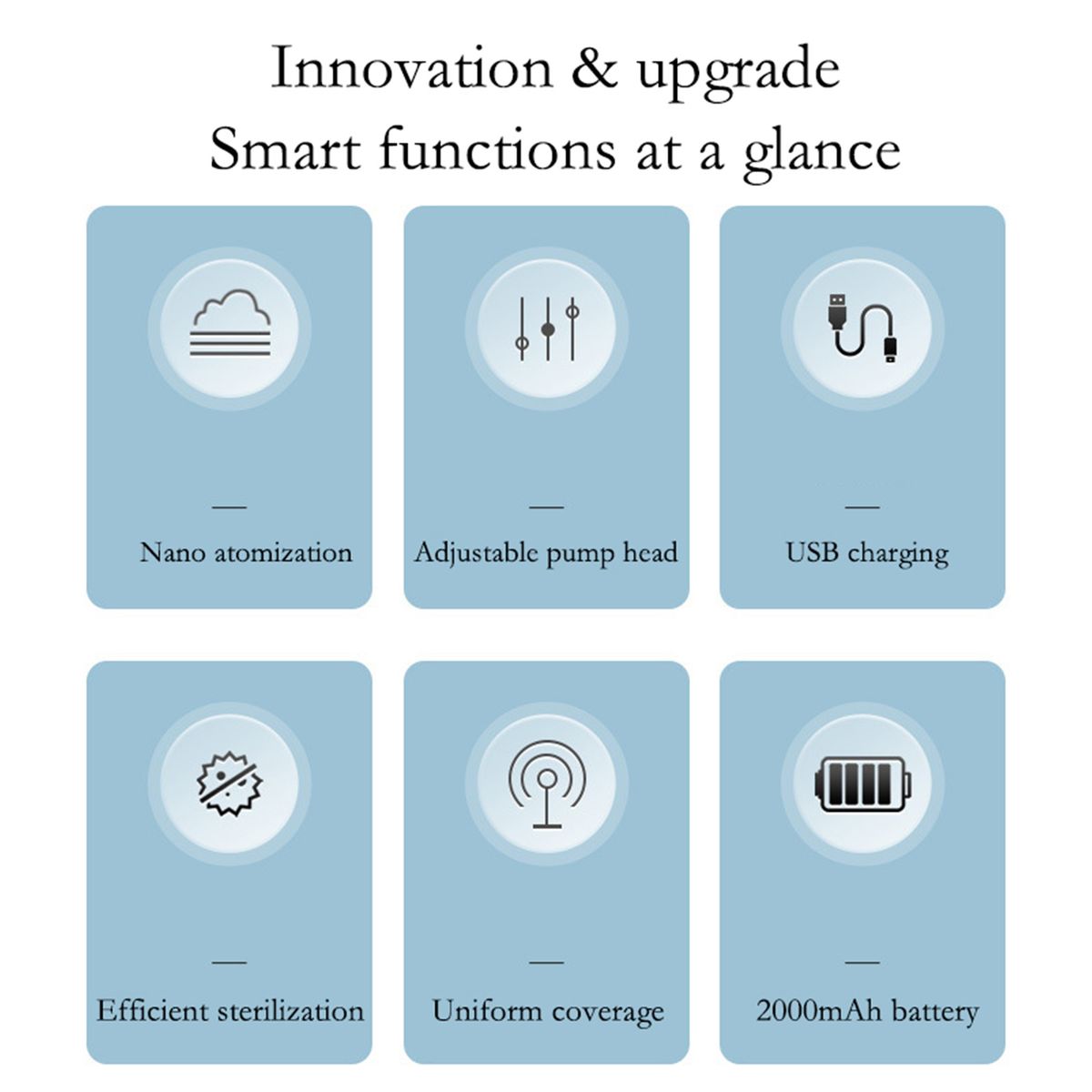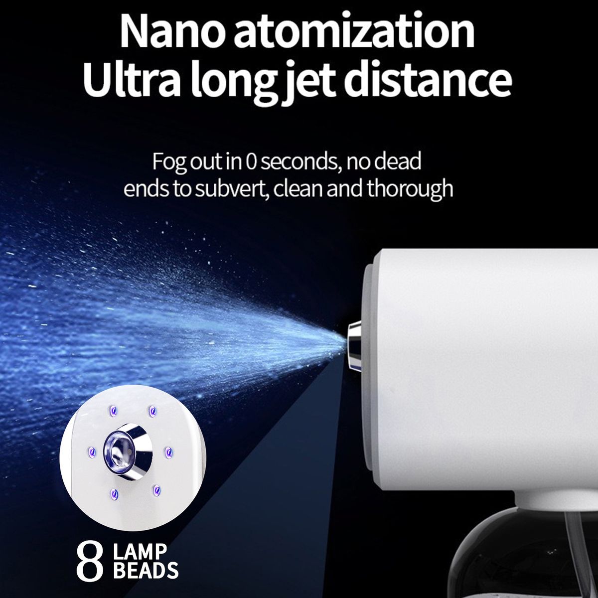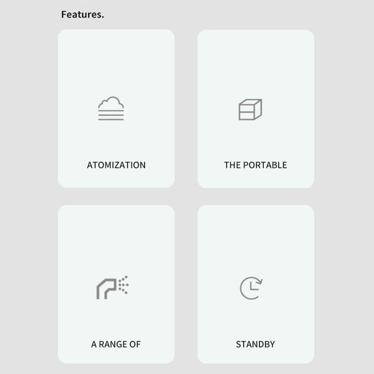 Wireless portable hand-held design, spraying distance up to 1.5 meters, can be directly sprayed on the surface of the human body, clothing, household appliances, and other objects.