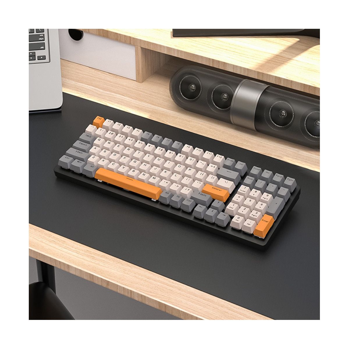 The size of the fuselage is simplified, and the optimized 100-key key layout design retains the common keyboard functions as much as possible, while the appearance is both beautiful and practical.