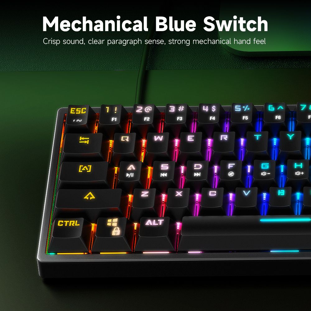 The mechanical blue switch has crisp sound and clear paragraph sense, strong mechanical hand feel, suitable for typewriting and working.