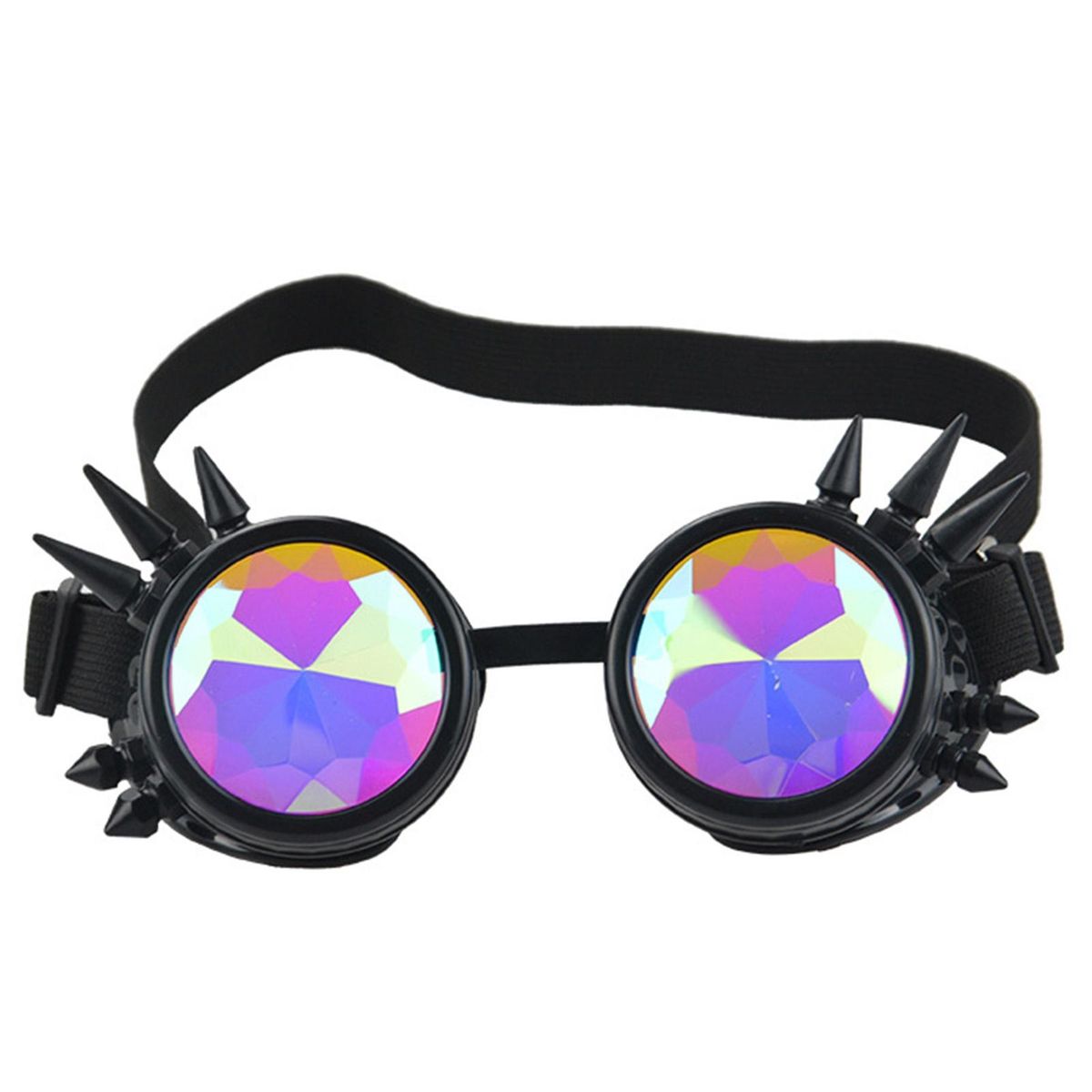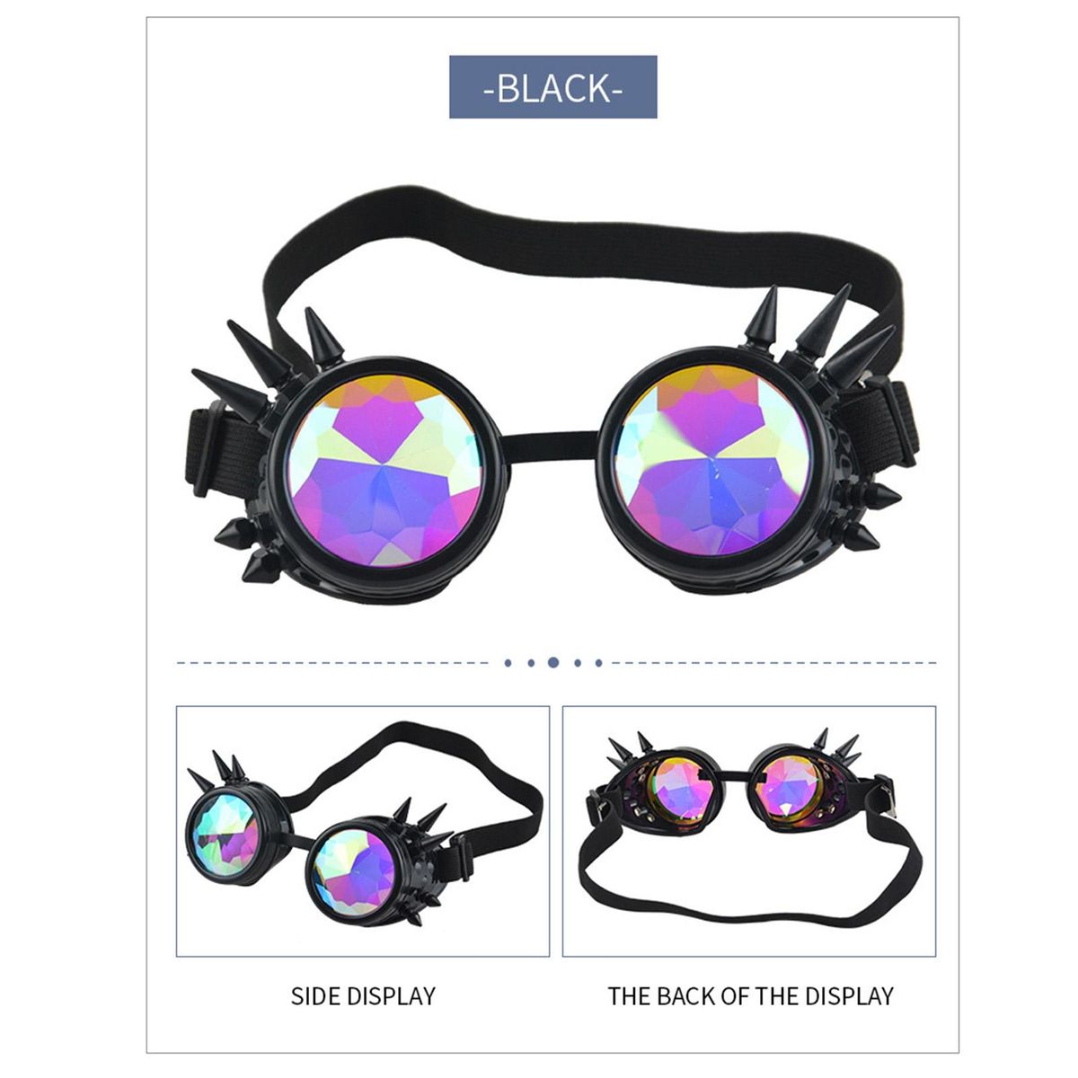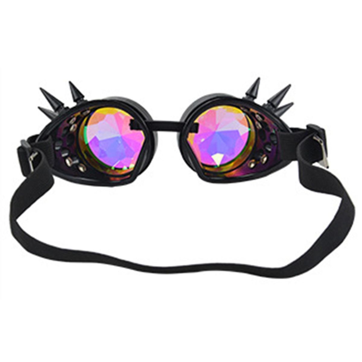 Featuring colorful kaleidoscope rainbow prism, these glasses also has pointed edge and retro steampunk style, making you look so individual and cool.