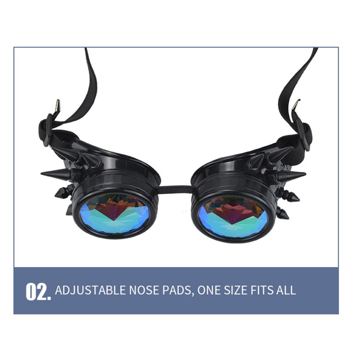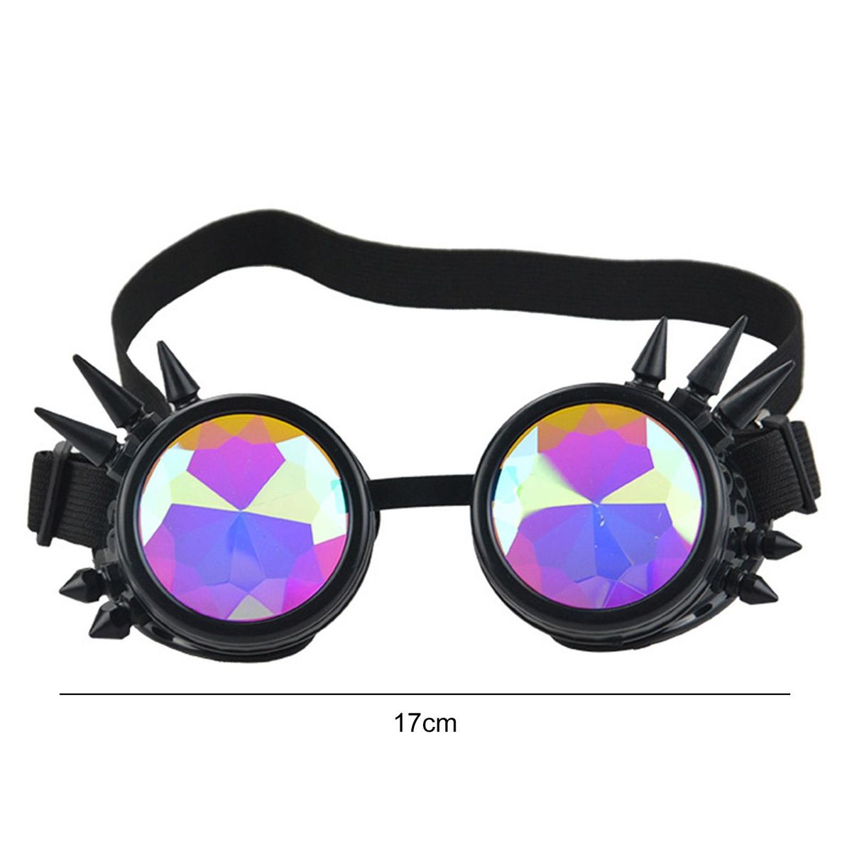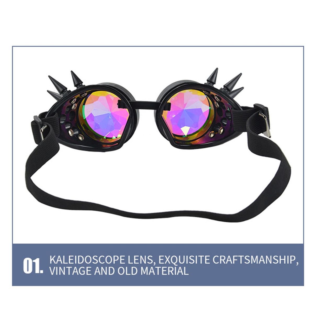 Featuring colorful kaleidoscope rainbow prism, these glasses also has pointed edge and retro steampunk style, making you look so individual and cool.