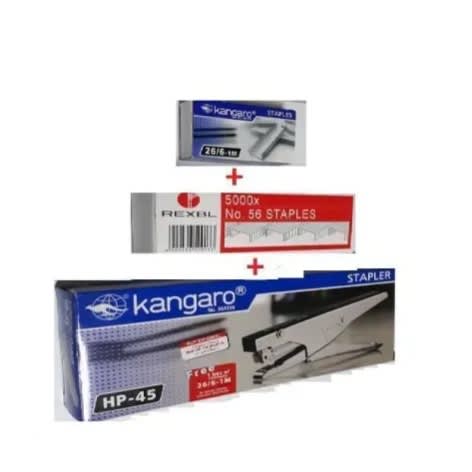 The 45 Kangaroo stapler half strip all metal construction with plastic cover is suitable for home and office use. It has a mechanism for quick loading and excellent staple ability with ease, durability, comfort and high level efficiency.