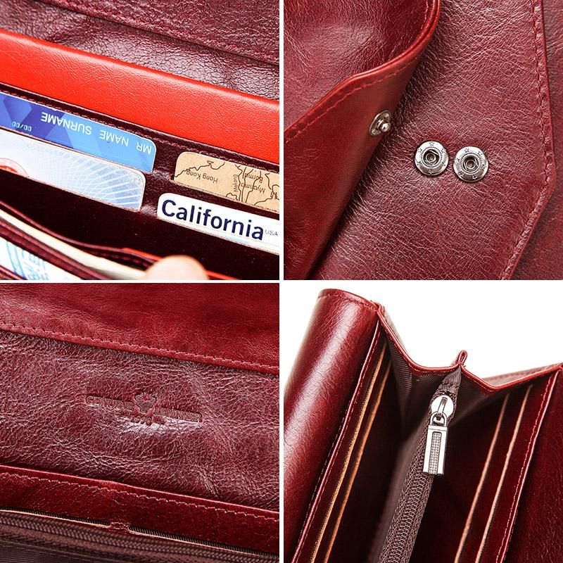 KAVIS-cartera de piel autentica de alta capacidad para mujer, monedero femenino, bolso de mano con abrazadera, tarjeteroKAVIS-cartera de piel autentica de alta capacidad para mujer monedero femenino bolso de mano con abrazadera tarjetero