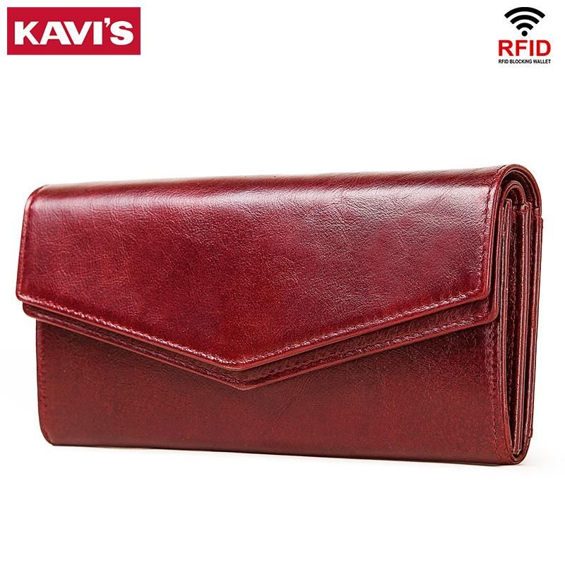 1X KAVIS-cartera de piel autentica de alta capacidad para mujer monedero femenino bolso de mano con abrazadera tarjetero