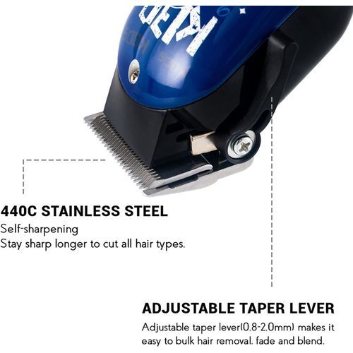 - 【Peofessional Precision】440C Stainless steel precision Self sharpening, Stay sharp longer to cut all hair types. Adjustable taper lever(0.8-2.0mm) makes it easy to bulk hair removal,Fade and blend.