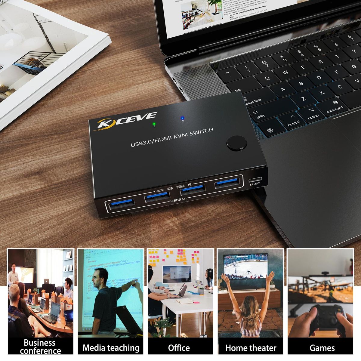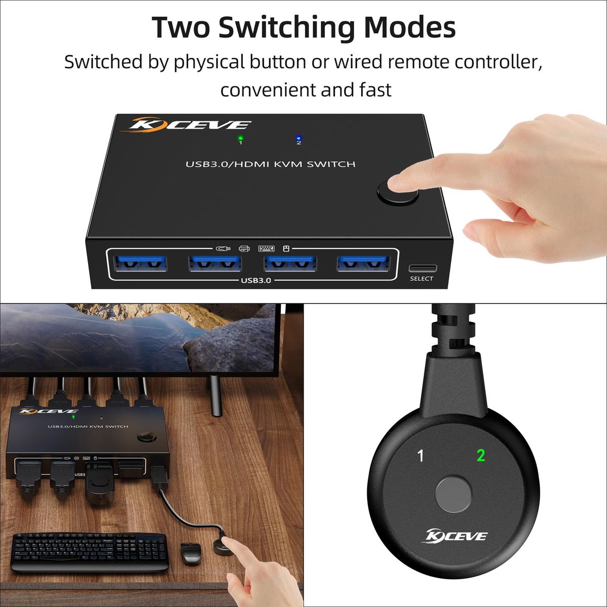 Buy KCEVE KC-KVM201A USB3.0/HD 2 in 1 out KVM Switcher Support up to 3840*2160@60Hz Resolution One-button Switching Wide Compatibility in Nigeria