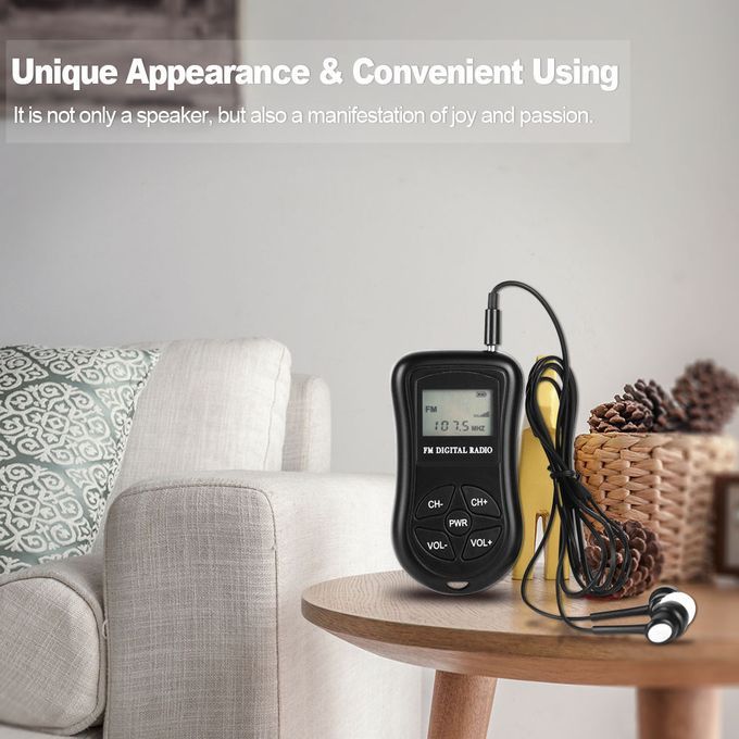 The radio is small and easy to carry. Equipped with a lanyard, which enables the radio to hang around your neck when in use, easy and convenient. Listening with the included headphones to avoid being affected by the surrounding environment, low and low current. With a 1.15-inch LCD display, it displays the frequency, volume, battery symbol, signal strength indicator, bringing you great convenience. The shell of the radio is made of ABS material, which is smooth and bright with good texture.
