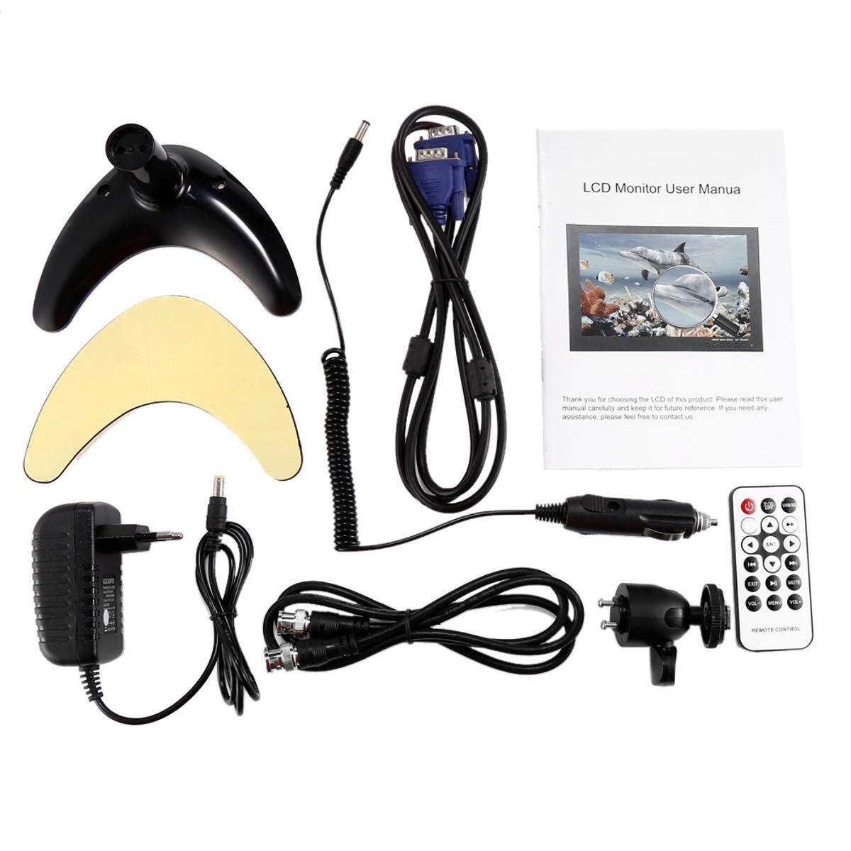1xVehicle Display 1xRemote Control 1xVGA Cable 1xCable Adapter 1xBNC Cable 1xHolder 1xSpring Car Charger 1xEnglish Specification